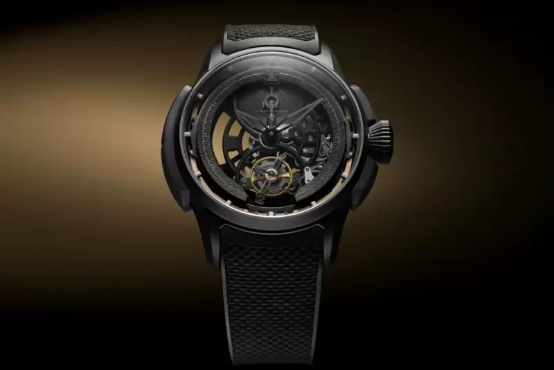 44毫米瓷化鈦金屬(Ceratanium®)錶殼搭載82915型機芯,機芯的夾板、橋板和擺陀全是採用鏤空處理,飛行分鐘陀飛輪則位於黑色圓圈錶盤的6時位置,重量僅0.663克,此舉能將機芯的質量降至最低,發揮避震系統的最大性能,同時具80小時動力儲備。錶盤設計也極簡化,黑色圓圈上只保留12點鐘位置的三角形標誌及分鐘刻度。如斯高級複雜的機芯和錶盤工藝之美,盡收於藍寶石玻璃錶鏡之內。