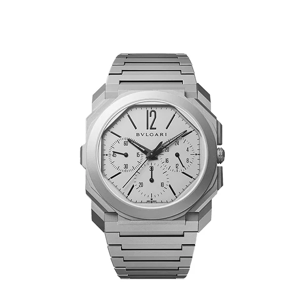 特薄腕錶大家可能會想起Piaget,但現時Piaget多了一個競爭對手,就是Bvlgari。自2014年以來Bvlgari差不多每年都有世界紀錄,創造了一個又一個超薄紀錄,它的進步大家有目共睹。2019年推出的Octo Finissimo Chronograph GMT,成為了世界上最薄的計時碼錶,並在2019年的GPHP獲得最佳計時碼錶的殊榮,戰況愈戰愈勇。6.90毫米錶殼和僅3.30毫米機芯,能配備計時與GMT功能,真的薄到得人驚。多年來,超薄計時碼錶一直未能普及,原因是計時碼錶需要很多零件,而且需要空間,並且開發極其複雜,因此不是太多品牌能做到超薄計時碼錶。從設計角度來看,這款計時碼錶的外形是建基於最初Octo Finissimo的設計,不同的是改用了42毫米噴砂鈦金屬錶殼及錶帶,可看到錶殼上帶有羅馬元素,例如羅馬大教堂的八角形和倒角邊緣元素。特別喜歡Octo Finissimo錶殼一層一層的設計,很有層次感,外形比其他計時碼錶更特出,一看就知道是Bvlgari。第一眼看到這枚計時碼錶,心想為甚麼沒有按扭?但其實是藏於錶殼左右兩側,與錶殼的八角形設計融合在一起,只是我們不覺眼。為了做到超薄,機芯的擺輪並非設於中心,而是設於機芯外圍,這可以減少機芯厚度,更可提供55小時動力儲存。總括來說,這枚計時碼錶在鐘錶界創下了壯舉,亦是證明了Bvlgari的實力。