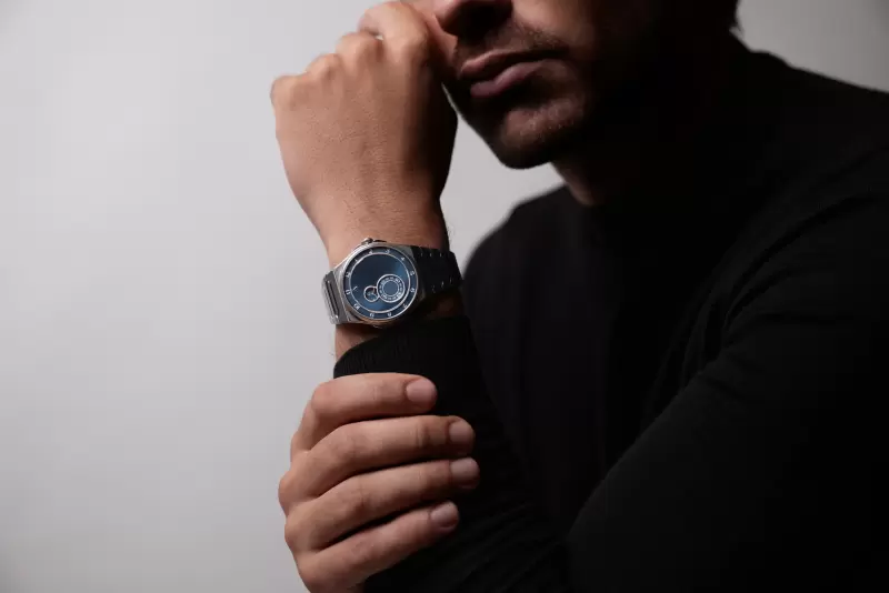 「Trente-Deux」(32)原來是品牌巴黎工作室的門牌號碼,也象徵歷時三年研發的結晶。直徑39.5毫米的不鏽鋼腕錶,以酒桶形中層與七件式錶殼結構打造出立體層次,錶圈凹槽紋理與拋光脊線交錯成光影流動的語言。標誌性的尖形符號巧妙地藏於設計之中,呼應品牌「在秩序中創造變化」的哲學。首次登場的一體式不鏽鋼鏈帶同樣細膩考究,每一節鏈節經緞面與倒角拋光,收窄的線條流露優雅;雙摺疊扣的無按鈕設計則帶來自然的佩戴體驗。