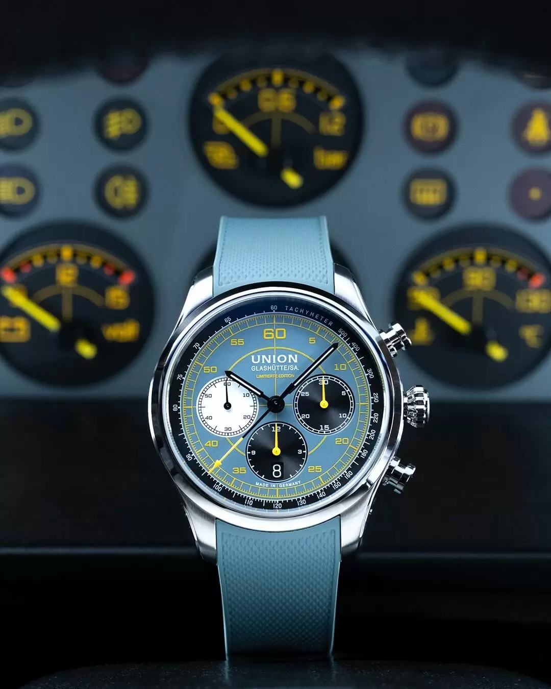 來自德國的UNION GLASHÜTTE將一台1980年代的意大利拉力賽名車Lancia Delta Integrale化作一枚藍灰與亮黃交織的計時腕錶,Belisar Chronograph Speedster Limited Edition 2025更像一台被時間封存的賽車,充滿動感、技術與懷舊情懷。