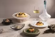 作為法國工藝美學的象徵,LALIQUE一直以光影與結晶之美聞名於世。其藝術與創意總監Marc Lamison在構思「磅礴大地」(Terramineral)系列時,從地球的原始力量出發,以火山斷層與地層紋理為靈感,呈現自然界的張力與永恆。這份詩意的創作哲學,也啟發了明閣行政總廚李悅發師傅。他以粵菜為媒介,將大地的四大元素轉化為烹飪語彙,透過火候、刀工與時序的控制,探索味道的層次與能量。「粵菜講究平衡與留白,正如水晶的通透與光影變化。每道菜都承載著自然的氣息,讓賓客在品味之間感受大地由靜至動的生命節奏。」