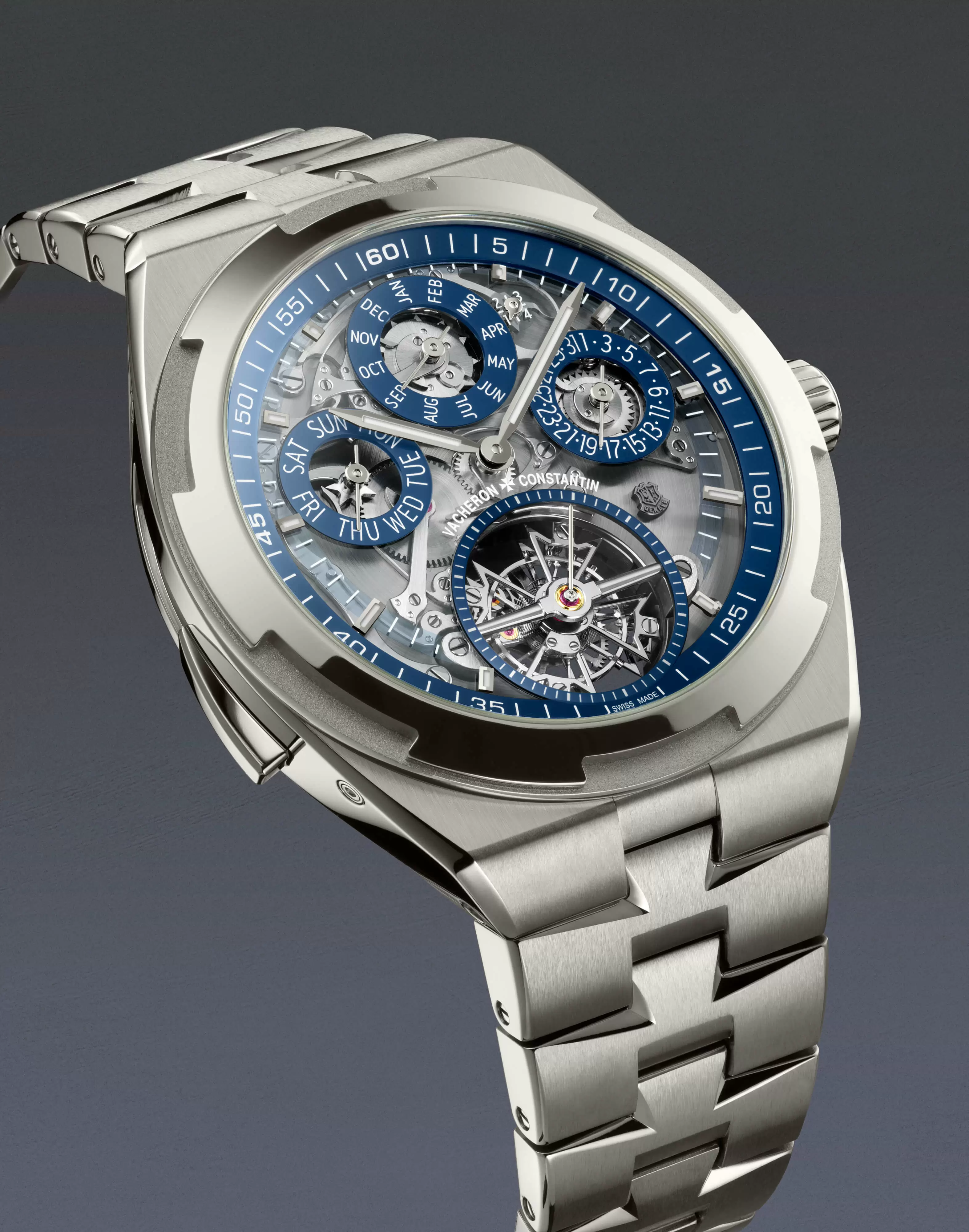 搭載其中的2755 QP機芯,不僅具備陀飛輪和萬年曆機制,更首次將三問報時功能引入Overseas系列。通常三問報時腕錶由於錶殼側面設有啟動報時功能的滑動裝置,導致防水性能受到影響。這為新款腕錶的研製提出了艱巨的挑戰,因為既要延續系列錶殼本身的出眾防水特性,又要根據機芯的尺寸來調整整體線條比例。為此,品牌製錶大師歷經一年半研發探索,對錶底蓋予以全面重新設計,為三問報時裝置留出充足空間,同時保留該系列標誌性的纖薄曲線輪廓。最後,系列的冒險精神與優雅氣派在全新錶殼上取得完美平衡,並以直徑44.5毫米、厚度13.1毫米的尺寸的最完美姿態呈現眼前。