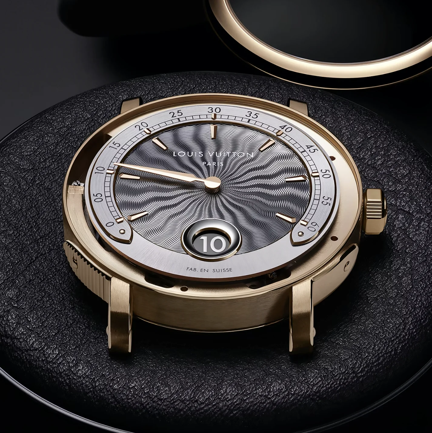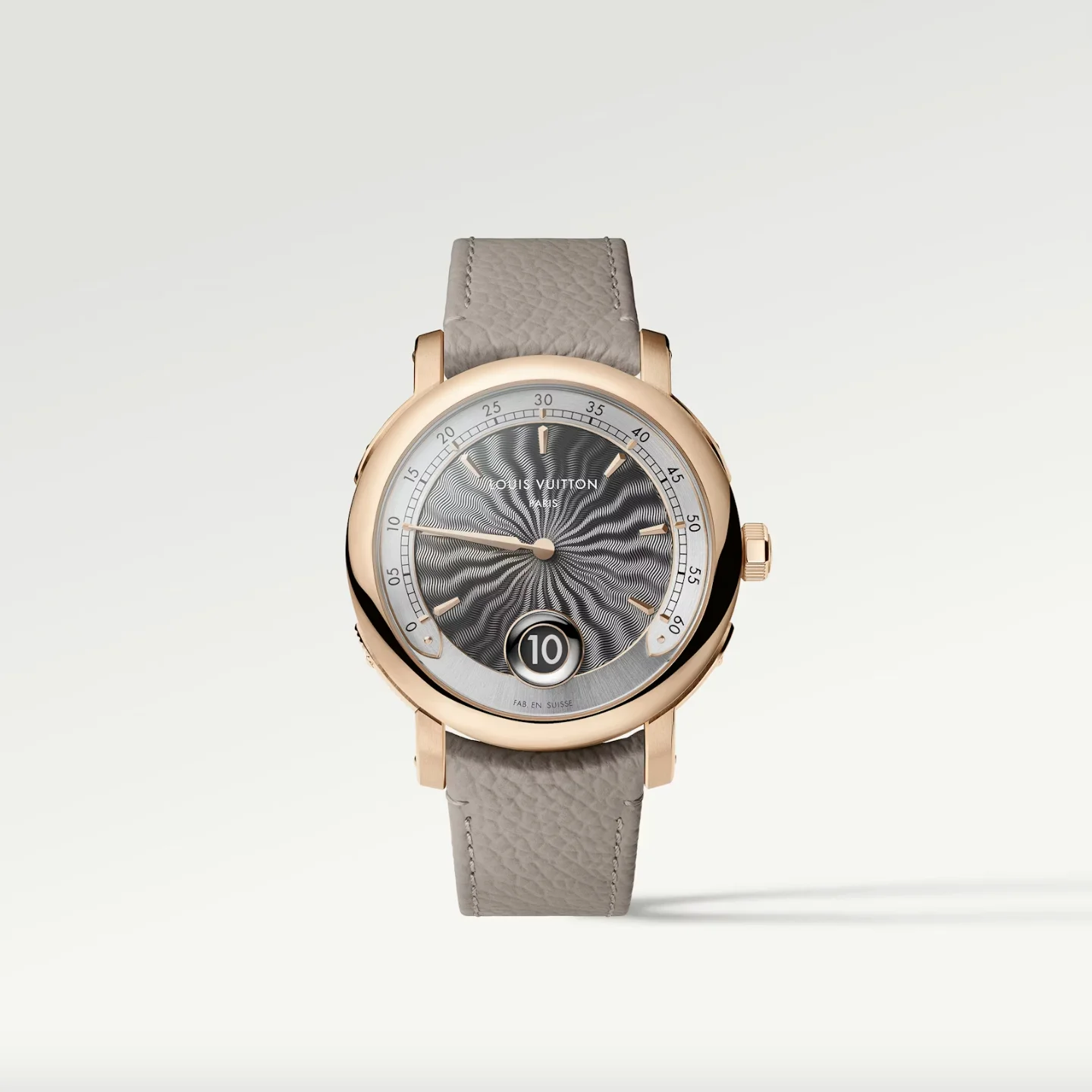 Louis Vuitton於LVMH Watch Week 2026推出全新Escale Minute Repeater三問腕錶,並順應潮流為這款腕錶增添了跳時和逆跳分鐘顯示功能。這款錶作採用直徑40毫米、厚度僅12.3毫米的18K玫瑰金錶殼,錶盤上的flammé guilloché紋理由傳統玫瑰車床(rose engine)手工雕刻而成,中央花紋製作需耗時60小時。