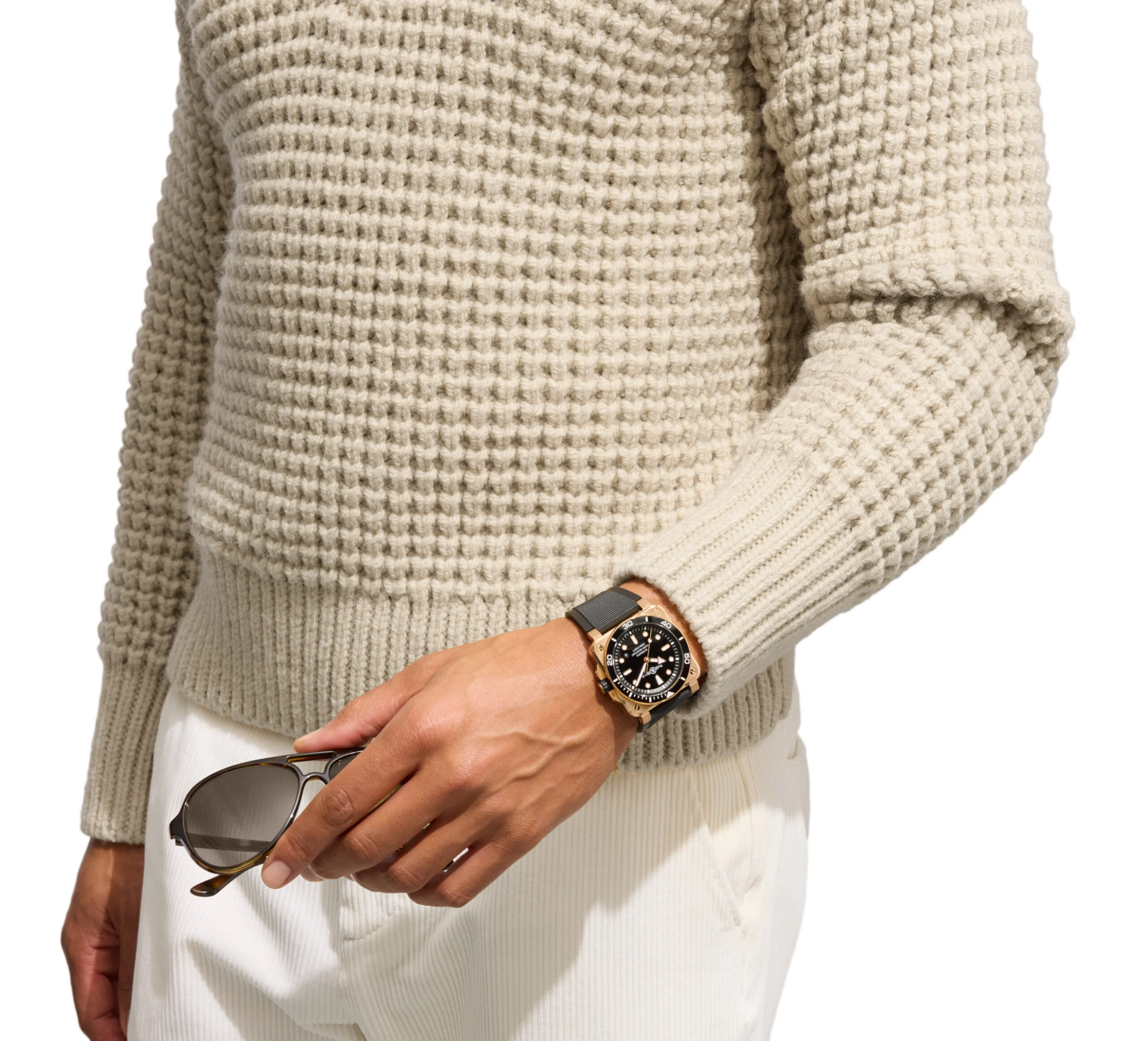 枕形「方中帶圓」42毫米錶殼採用CuSn8青銅製作,亮黑漆面錶盤與金色指針形成鮮明對比。青銅錶最引人入勝之處,在於會隨時間與環境逐漸氧化產生銅綠,每枚腕錶都會展現獨一無二的色澤變化,彷彿記錄錶主的個人軌跡。腕錶搭載BR-CAL.302-1自動機芯,約54小時動力儲備,限量999枚。