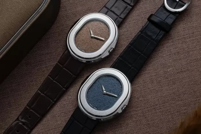 新作首度採用寶璣金製作,展現溫潤而堅毅的質感。同時,品牌以專利夜光琺瑯取代傳統 Super-LumiNova®,將創新注入經典工藝之中。錶殼直徑43.9毫米,內藏77F1型機芯,具備可預設的雙時區瞬跳切換功能,只需輕按八點鐘位置的按鈕,指針、日期、晝夜顯示與城市名稱便能瞬間切換。這套獨特的機械系統獲得多項專利,將複雜的計算濃縮於齒輪、凸輪與小錘的協作之中。