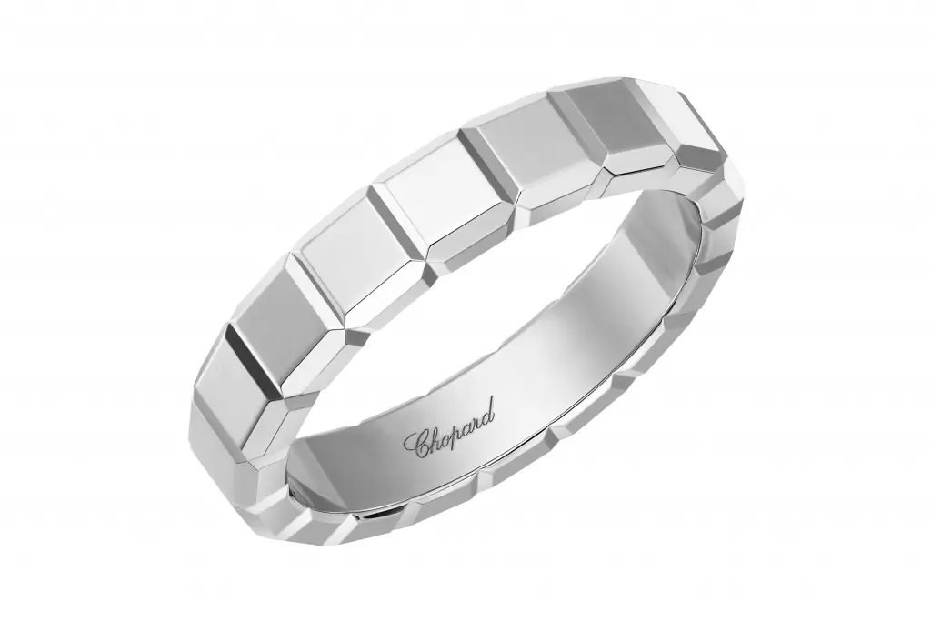 再細看強森指間的Ice Cube系列戒指,設計是源自1999年面世以來的立方體幾何線條,詮釋摩登風格。Chopard選用頂級的18K白金打造,並配合多重琢面打磨以折射十分耀眼的光影,營造出外形俐落,內在又具有個性的設計感,定價NT$72,000。