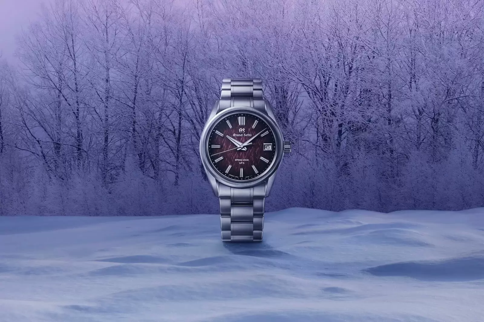 GRAND SEIKO不少作品都融入了詩意的風景,最近發表全新的Spring Drive U.F.A. SLGB005,以專利Ever-Brilliant Steel錶殼搭配深邃紫色冰霜紋錶盤,將日本信州森林破曉時分的靈光捕捉於方寸之間,新作限量1,300枚,在對極致準確度的追求之外,更是腕間的自然畫卷。