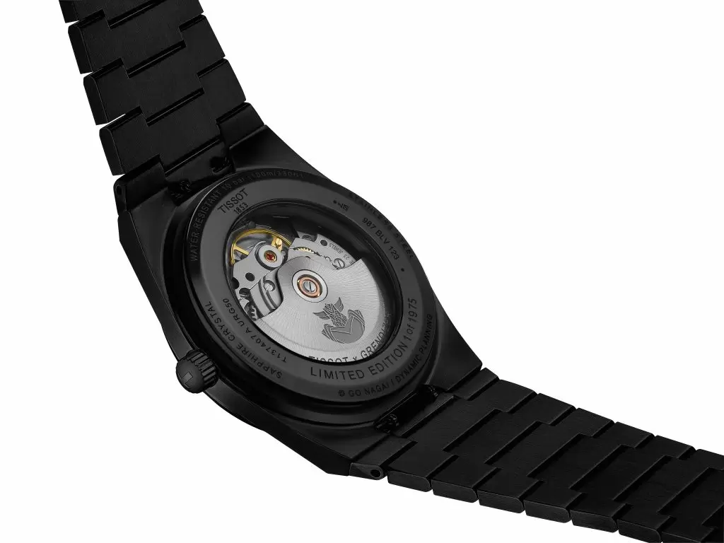 在眾多PRX中的焦點,必定是為了《金剛戰神》50週年而推出的限量紀念版PRX腕錶,台灣僅50只!腕錶以「全黑化」設計呼應未來感,錶殼與鍊帶均覆以黑色PVD塗層,散發冷冽的機械感。錶面中央躍現金剛戰神的拳頭英姿,配合立體結構與夜光塗層描繪線條,呈現超級系機器人的熱血感覺。秒針還以18K黃金製作,尾端則融入機器人的招牌武器「迴旋鏢」元素,令粉絲難以抗拒!