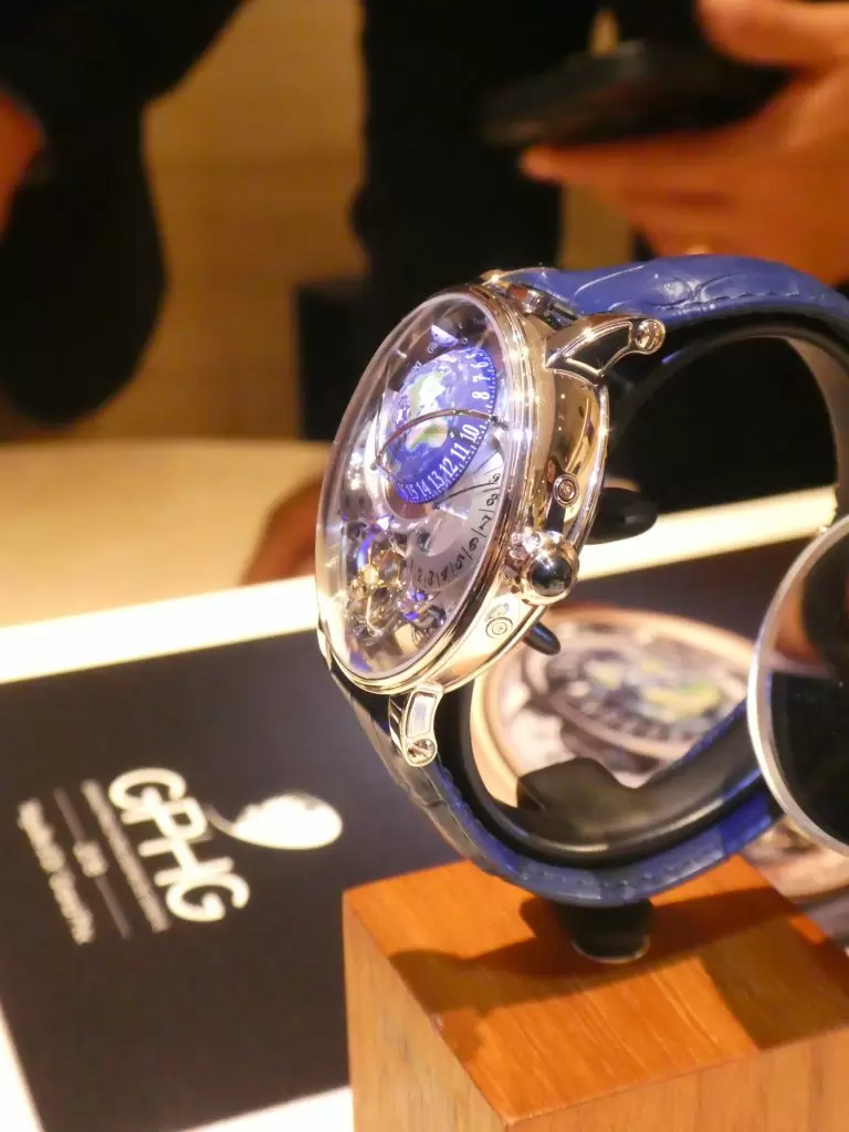 這次活動涵蓋了Récital、Virtuoso等多個系列大師之作,大部份腕錶也是首次來到台北展覽,當中的Récital 26 Chapter Two Golden Dragon便以其技術與想像力吸引了大家的目光。這枚腕錶以獨特的藍寶石斜面錶殼搭載三項專利設計,包括最吸引的雙面飛行陀飛輪!徑向導向系統,以及直觀的24時區顯示。讓它能同時呈現世界時間之外,並以立體V形指針配合旋轉城市盤,令佩戴者輕鬆選擇第二時區。值得一讚是錶盤上的龍,成功掌握了東方巨龍的尊貴和韻味,沒有混進西方飛龍的氣息,實用與觀賞價值兼備,建議售價NTD 19,190,000。