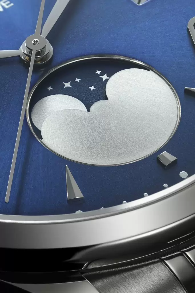 先看看新款的1926 Luna腕錶用上39毫米直徑的不銹鋼錶殼,時標都是跟一般的1926一樣,在2、4、8、10時用上數字顯示,其他時間則以鐘點標記。最特別當然是在6時位置換上月相顯示,雖然只是由通用機芯改良而成的T607-9,但是以準確和穩定程度來說,卻擁有極高水準表現。而即使是品牌的第一次,只要細心觀察月相的邊緣,也能夠發現進行了斜切的打磨,絕不馬虎,配合磨光及磨砂的316L鋼錶帶,感覺高貴又不怕會引發皮膚過感的問題,定價NTD85,000。