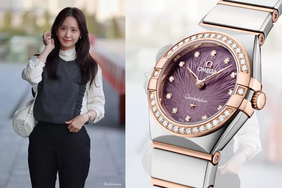 作為少女時代的門面,潤娥的衣著品味不用懷疑,而她最近佩戴的OMEGA星座系列腕錶則是金鋼型號,由錶殼到錶鏈都是以不鏽鋼和品牌的18K Sedna玫瑰金搭配而成,看上去比其他品牌的玫瑰金多了一份亮麗的感覺,最適合像Yoona一樣皮膚白晢的女生們佩戴。同樣美麗的還有在紫色錶盤上,飾有經電化學蝕刻形成的獨特超新星旋舞圖案,加上鑽石錶圈和時標,既像夜空的星星一樣,又能夠突顯佩戴者的高貴氣質,定價NT$317,000。