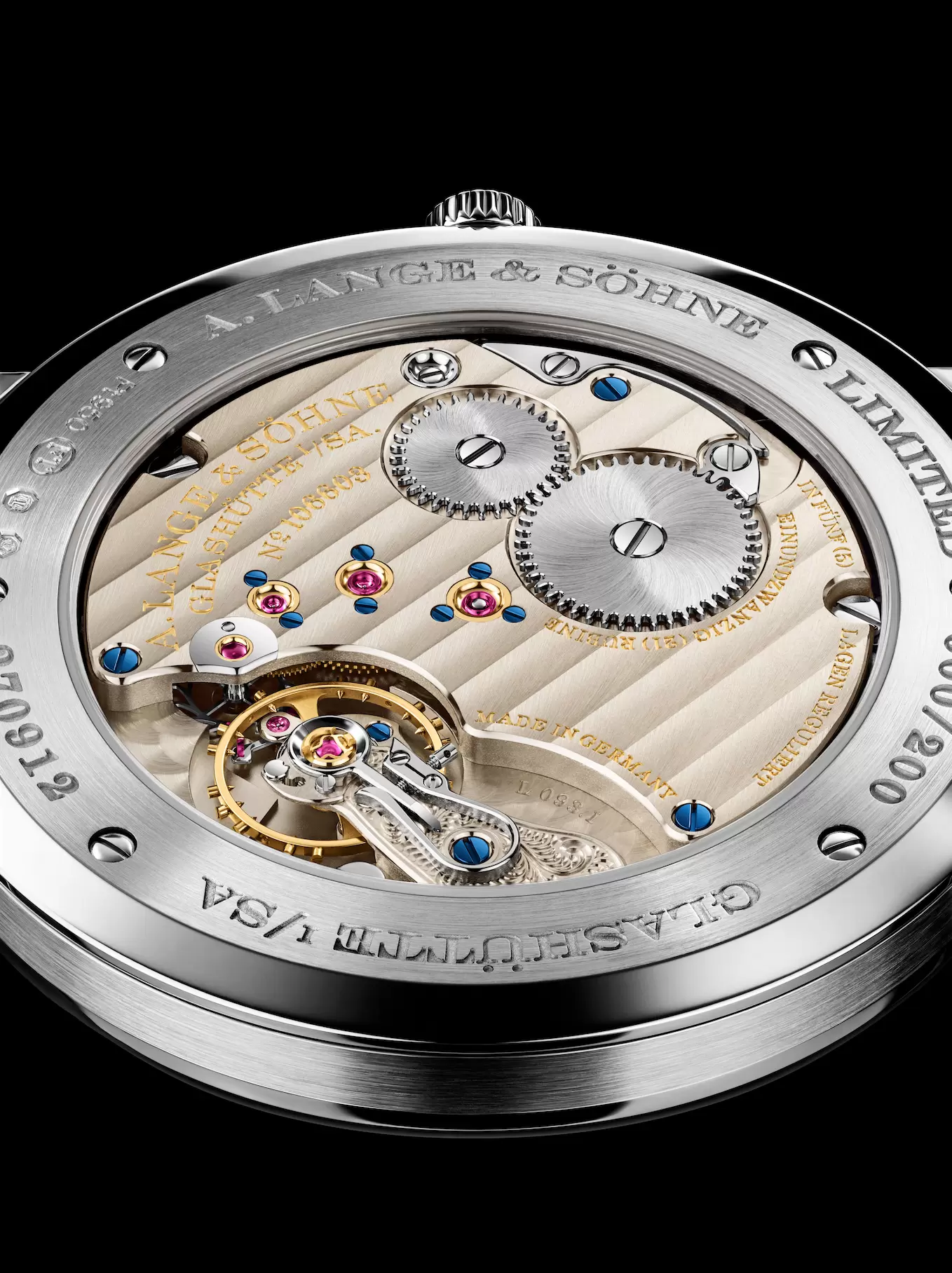 美學不僅存在於外觀,品牌將優雅融入至最細微的機械結構。SAXONIA THIN搭載厚度僅2.9毫米的L093.1手動上鏈機芯,內建扁平發條盒,儘管纖薄卻能提供長達72小時的動力儲備。透過藍寶石水晶底蓋,可以欣賞到德國薩克森工藝的極致修飾,3/4夾板的弧線、黃金套筒周圍的藍鋼螺絲、紅寶石軸承與拋光倒角,每一處皆是匠心與美感的交織。