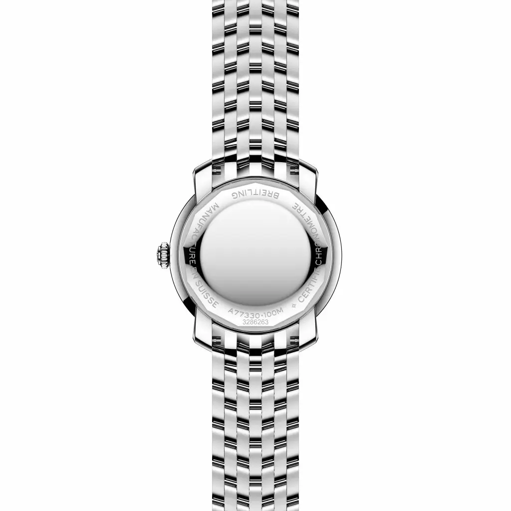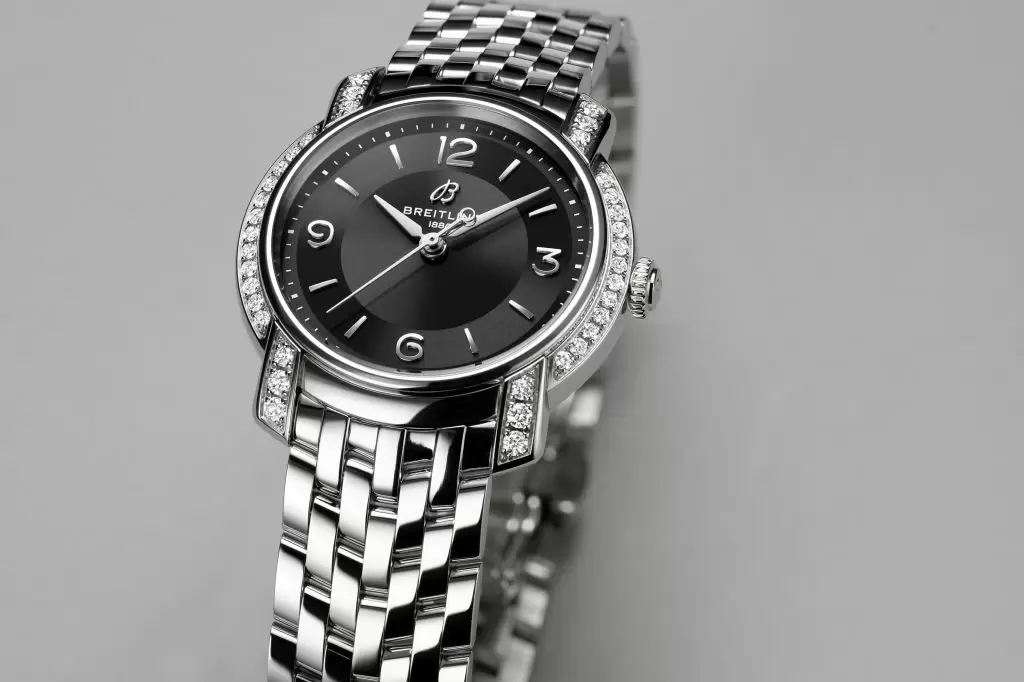 32毫米版本則採用珍珠母貝、墨藍或午夜黑錶盤,為了迎合女士們要調校時間的麻煩,因而配備百年靈77型SuperQuartz高精準石英機芯,準確程度同樣獲得瑞士天文台認證,而電池壽命更達3至4年非常方便。加上搭載全新Chevron七排錶鏈,柔順貼合手腕,佩戴十分舒適。外觀細節方面,這款Lady Premier也有搭載鑽石錶圈的設計,線條流暢,適合喜歡低調奢華的都會風格,售價NT$214,000。