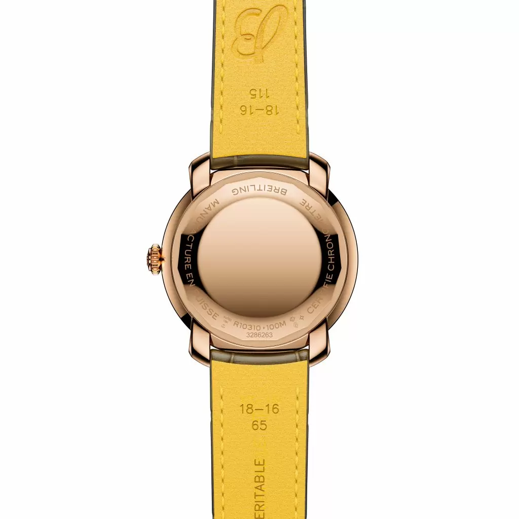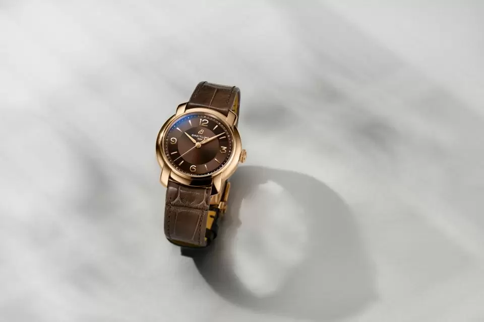 這一次來到台北的新系列,共有36毫米自動款與32毫米石英款兩種尺寸可供選擇。36毫米錶款以精鋼或18K金打造,搭載通過COSC認證的Breitling 10型自動機芯,動力儲存約42小時。錶盤除了有今年大熱的漸層紫灰、灰綠,還有鴿灰與巧克力棕等經典色系,搭配相應鱷魚皮革錶帶,色調細膩而具層次。當中的巧克力棕色系配上18K金錶殼,感覺最為高貴,男生買來送給另一半的話,更可以交換佩戴,一物兩用,售價NT$476,000。