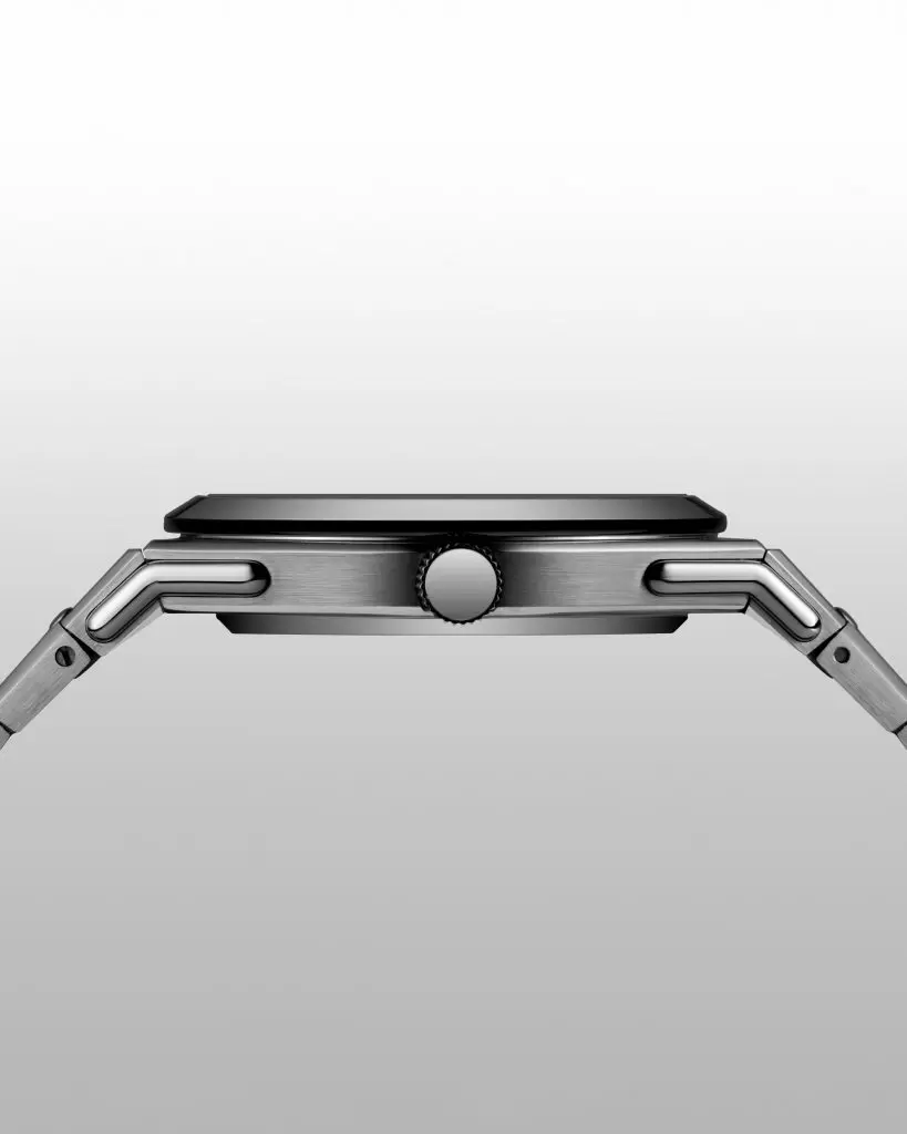 至於2340的錶殼與鍊帶則以鈦金屬與精鋼混合打造,霧面與拋光交錯的質感層次分明,每一節鍊節皆經手工倒角拋光,搭載隱藏式摺疊蝴蝶扣,佩戴感舒適。值得一提是其一體式設計配合四條拋光立體裝飾線,完美隱藏了鍊帶連接結構,同時呈現俐落的輪廓比例。內部雖然只搭載Sellita SW300-1自動上鍊通用機芯,但是Louis Erard也透過透明底蓋,為自動盤加入品牌的專屬裝飾,別具誠意,訂價TWD 132,800。