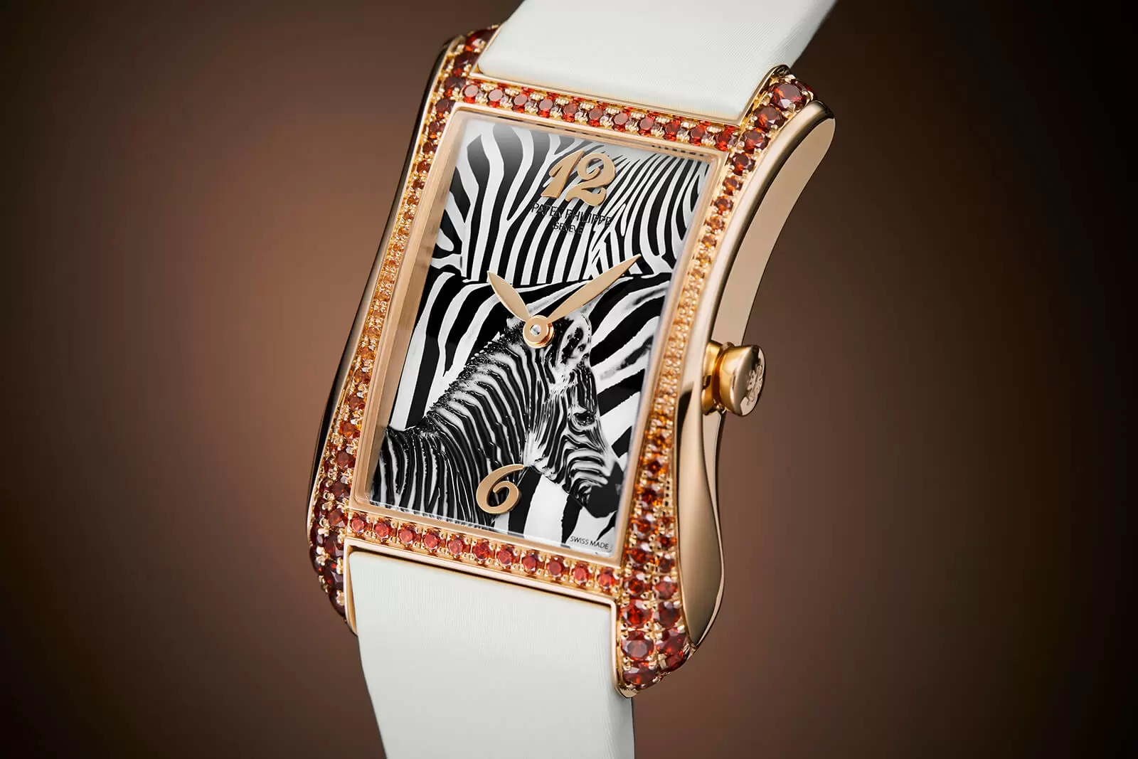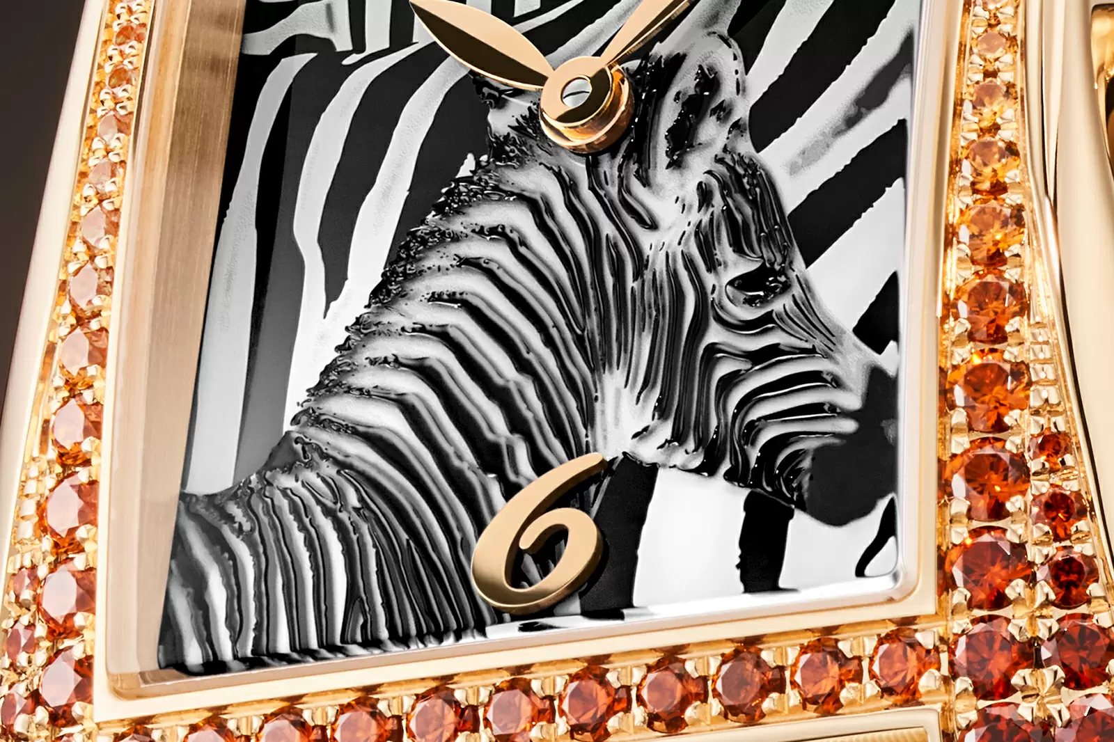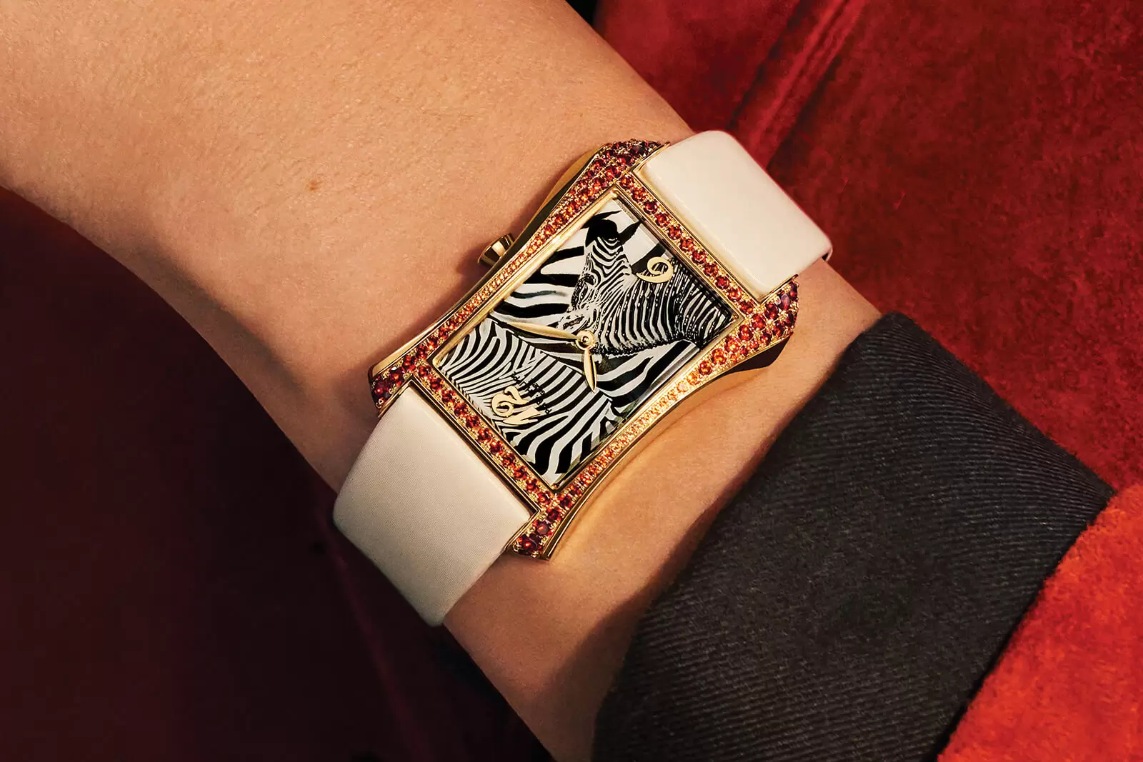 Gondolo Serata系列自2006年誕生以來,一直以柔美曲線見稱,過往設計以低調為主,今天全新Zebra版本以大膽的視覺語言改寫印象,斑馬紋錶盤在光影下流動,鮮明而不張揚,展現女性的果敢與自信。新作的靈感源自2022年Rare Handcrafts系列的Golden Ellipse限量版,以琺瑯工藝呈現的紋理,如今被轉化為更具現代感的藍寶石刻蝕技術。結果是一場傳統與科技交融的藝術實驗。