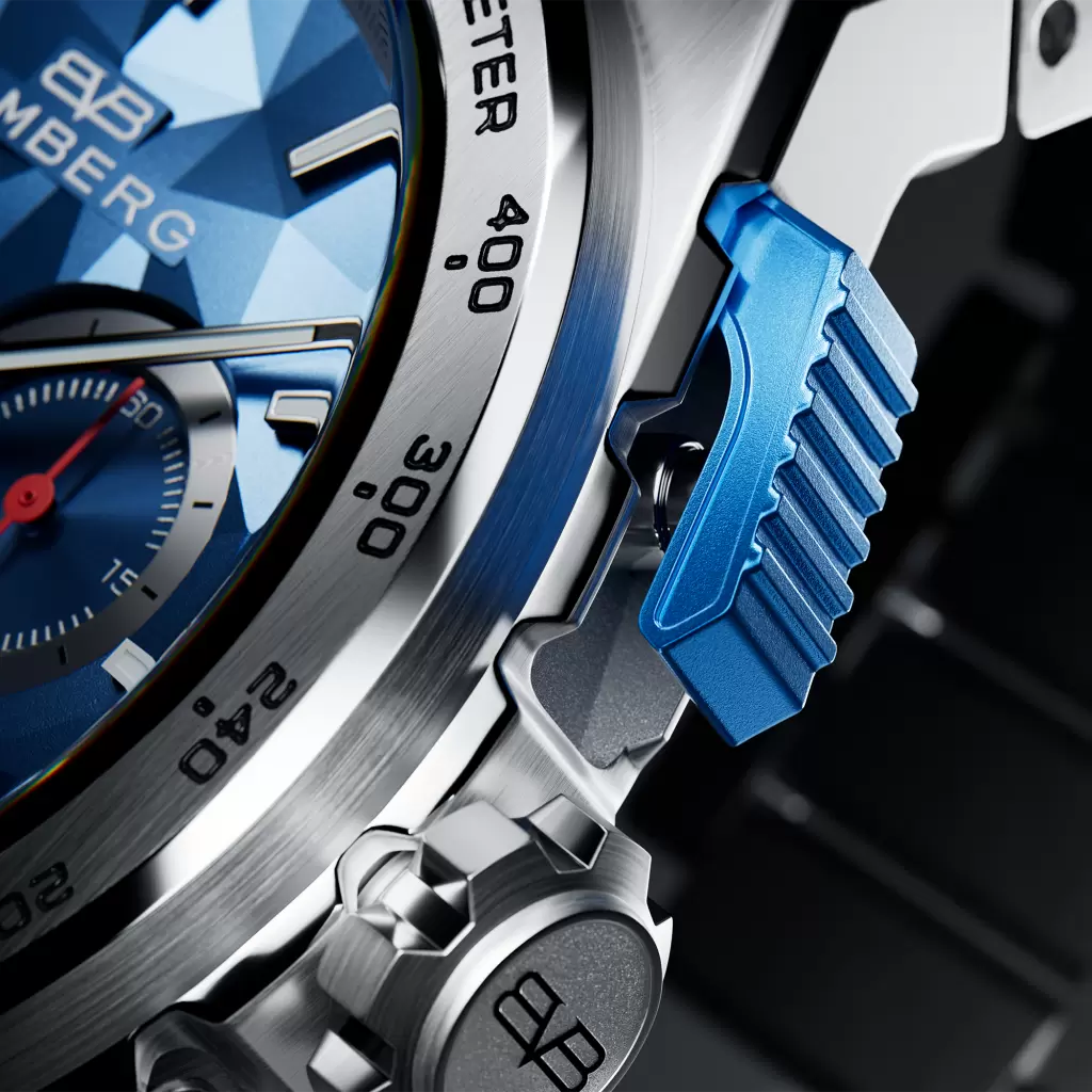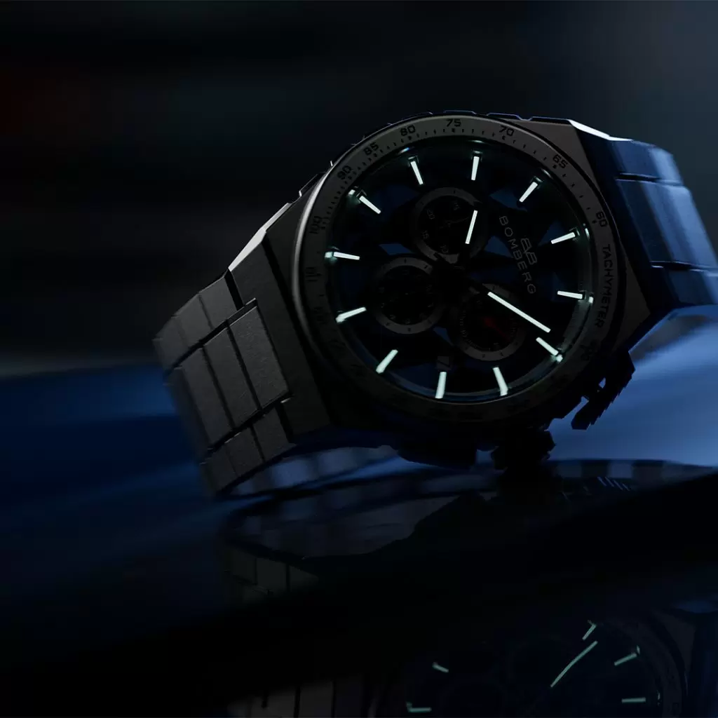 經過多年流行之後,藍色的錶盤已經嘗試過層出不窮的色調變化,如果要再加入新元素,還可以怎樣演變呢?瑞士獨立製錶品牌BOMBERG,則在新發表的Apex PULSE CB脈衝藍計時碼錶,加入藍色的立體面盤結構,配合鮮明的金屬線條與具識別度的計時設計,來呈現與眾不同的精準工藝創作。這款腕錶以全藍色調為視覺主軸,透過光影變化與多層結構,刻出讓人感受品牌節拍和時間跳動的腕錶。