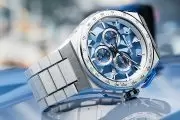 無可否認,這枚Apex PULSE CB最大的亮點是其Pulse-Cut立體切割面盤,可以在光線下折射出不同層次的反光效果,營造類似聲波躍動的節奏感。而當啟動計時功能後,1/10秒針與計時秒針同步運作,成功顯示強烈的速度感,恰如城市節拍的即時跳動。錶殼則以316L精鋼打造,並採用拉絲、拋光與倒角等多重工藝處理,使金屬外觀更具層次。配合一體式精鋼鍊帶感覺俐落,並與隱藏式摺疊扣形成更完整的金屬輪廓,令日常佩戴時兼具穩固度與舒適度。