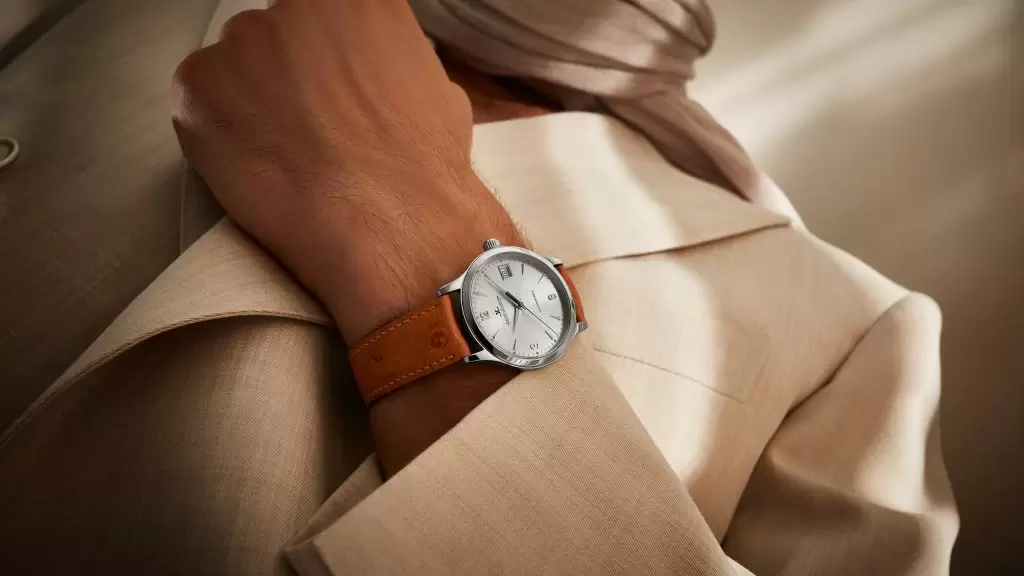 這款腕錶最吸引之處,就是JLC罕見將尺寸回歸36毫米的歷史原點。相較過去十多年來常見的40至42mm錶徑,顯得更復古和精緻,也更接近1995年首款 Master Control的原始精神。銀色太陽放射紋面盤、三角形時標與太子妃式指針構成了最純粹的經典,整體佈局比例緊湊,沒有大而無當的感覺,搭配的藍色秒針則注入明亮跳色。再加上暖棕色鴕鳥皮錶帶、淺色縫線與傳統針扣,細節從面盤延伸到腕間,整體氛圍洋溢古典美。