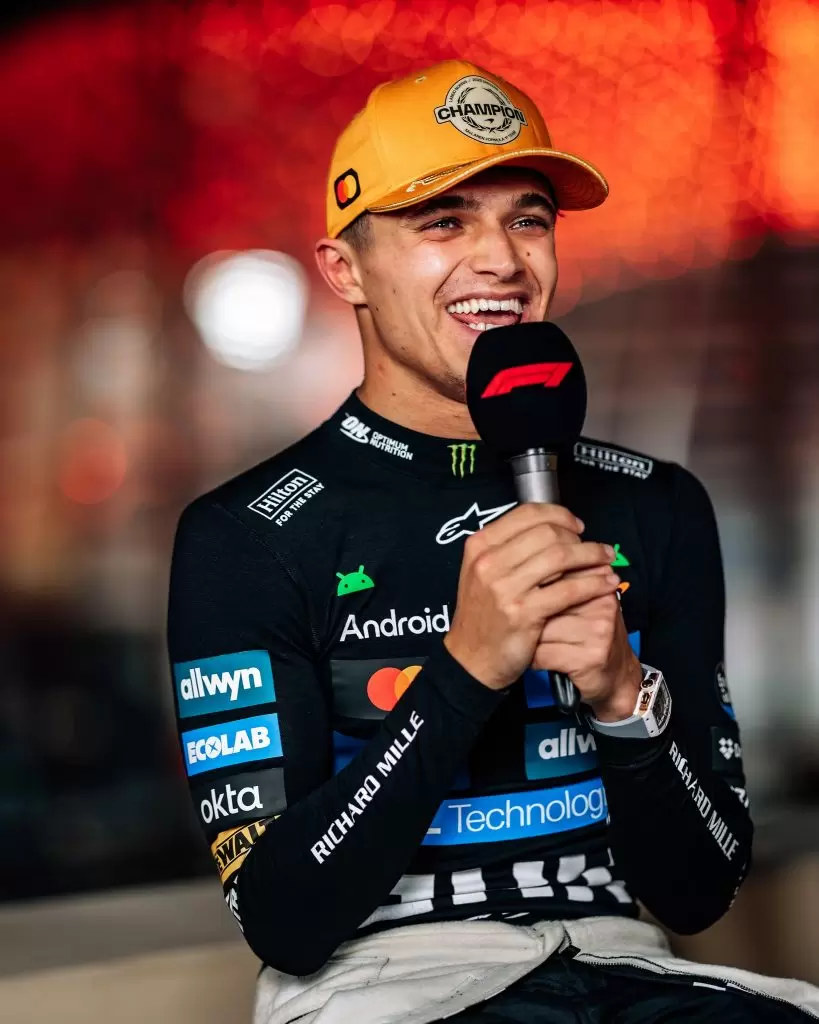 2025年度的F1世界一級方程式賽車終於在阿布達比站結束後正式落幕,雖然Max Verstappen維斯塔潘拿了最後分站的冠軍,但是總成績仍是以2分之微,敗給了McLaren Racing麥拉倫車隊的Lando Norris諾里斯。換言之,諾里斯成功登上2025車手世界冠軍的寶座,更是F1史上第35位世界冠軍!在頒獎禮中,Norris腕上的RICHARD MILLE理察‧米勒RM 72-01 LIFESTYLE自製機芯計時碼錶自然成為拍攝焦點,同時大家也沒有忽略他的女朋友Margarida Corceiro科塞羅,還有她佩戴的腕錶。