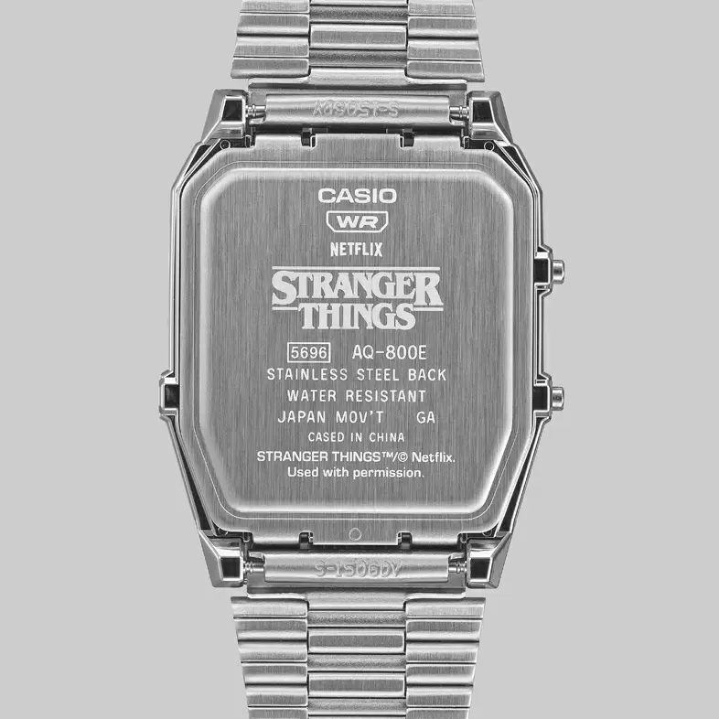 錶盤細節也藏著更多劇迷梗,最迷人的莫過於DW-5600STT的「LED BACK LIGHT」字樣中,那個被刻意倒轉的「A」,低調卻精準地把現實世界與顛倒世界的關係收進一個字母裡。AQ-800EST則用上影集專屬字體打造金屬塗層時標,復古之餘又帶著一點神秘未解的氣質。加上印有魔神與藤蔓圖騰的特別包裝,開盒那刻完全就是劇迷的心臟暴擊。兩款腕錶均會在CASIO實體概念店發售,12月13日將販售DW-5600STT售價NT$4,200,AQ-800EST則在12月14日開賣,售價NT$3,600。