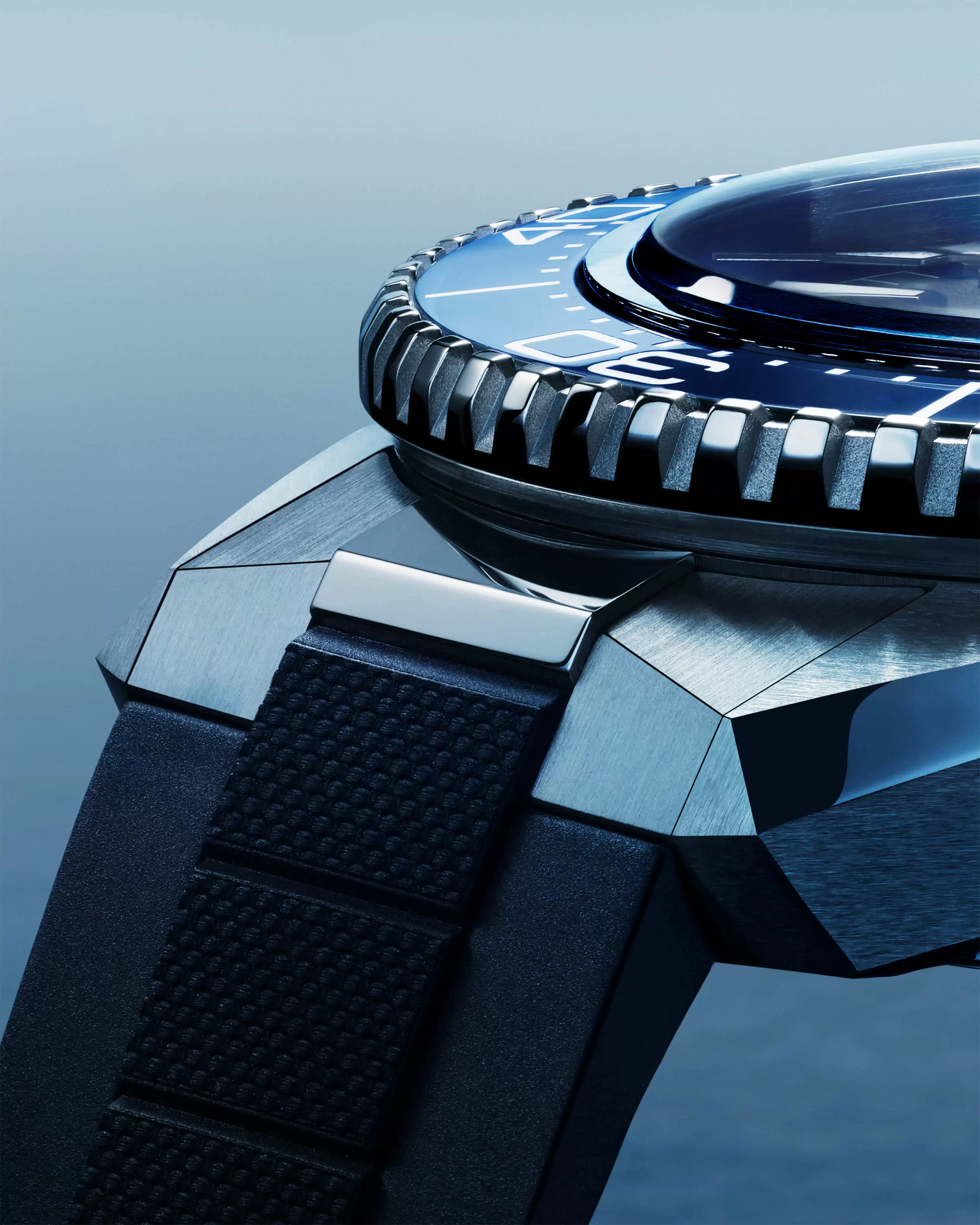 新作還有一個更堅固的秘密,就是鈦金屬內環與螺旋式錶背,全新錶殼結構由兩部分組成,分別是主體與5級鈦金屬內環,這項源自Ultra Deep的技術,讓腕錶在深潛壓力下保持穩定密封,將防水性能提升至600米。錶背捨棄藍寶石改以鈦金屬底蓋,減輕重量並增強抗撞性。中央鐫刻經典海馬標誌,象徵著Planet Ocean不變的探索精神。