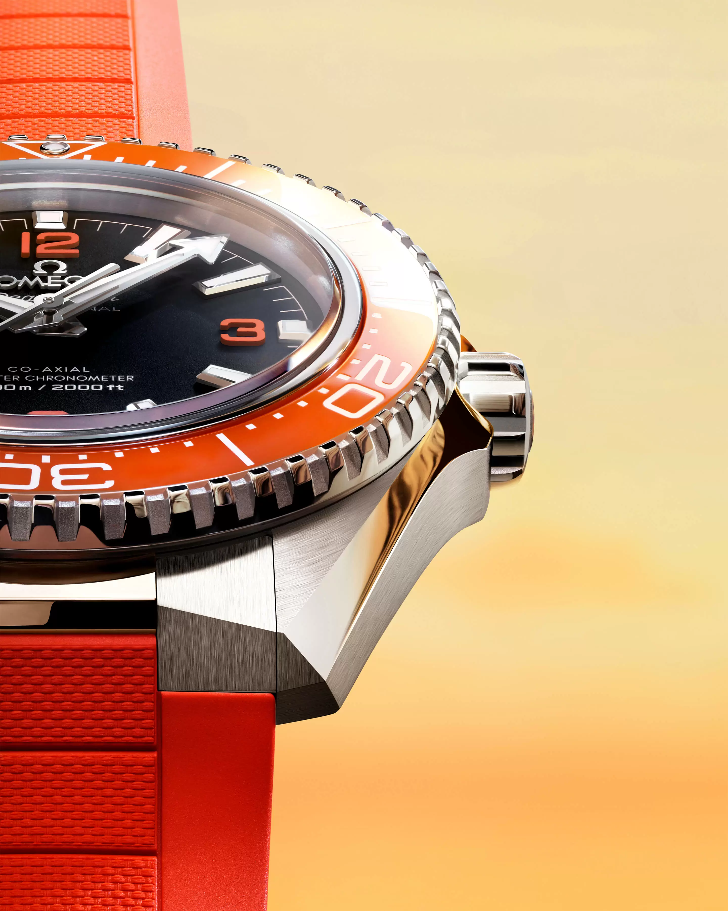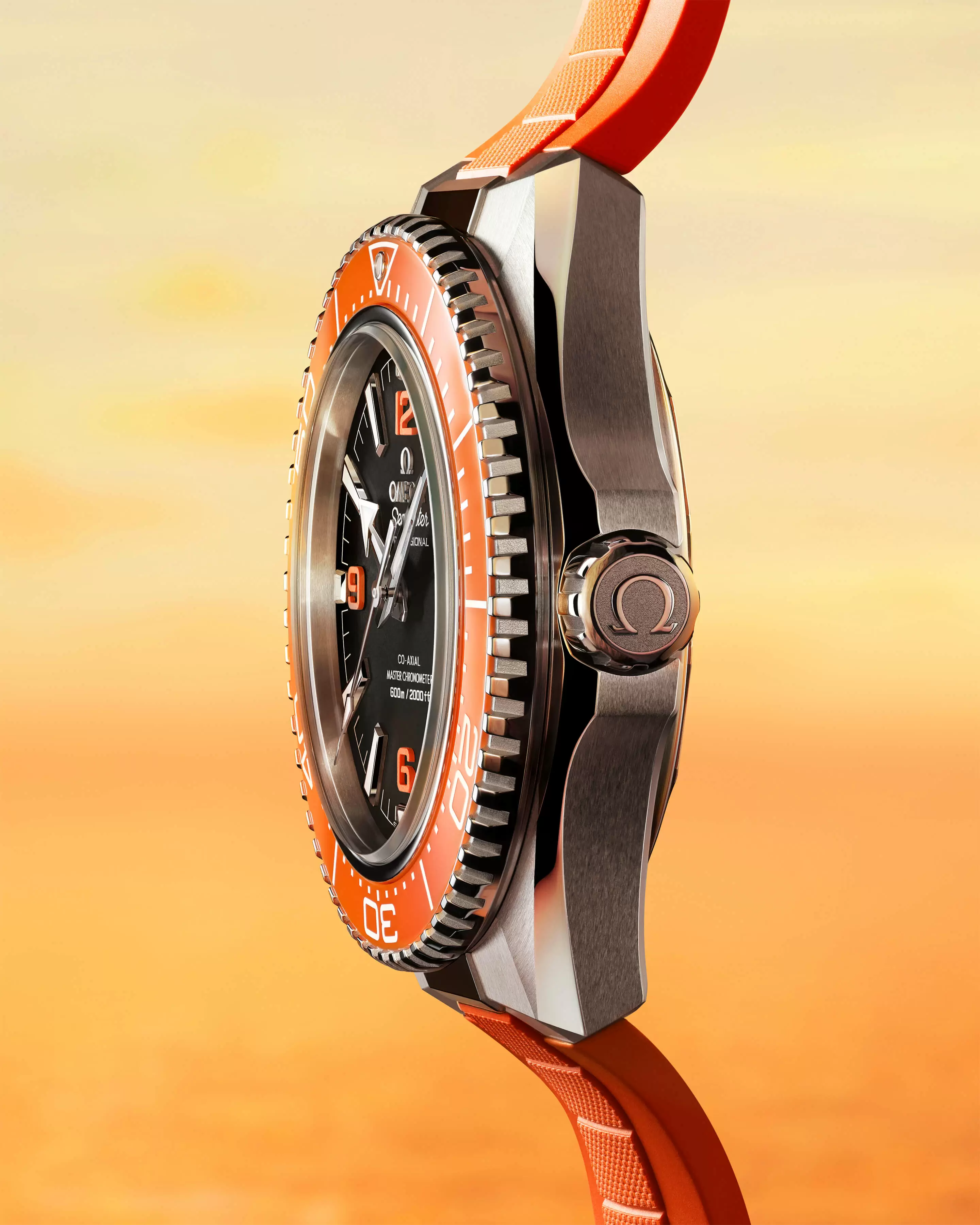新作另一個討論高的亮點,就是橙色的回歸,Planet Ocean初代最令人難忘的,正是那一抹亮眼的橙色。今年OMEGA將這款象徵重生與能量的色調再次帶回來,並以全新陶瓷工藝達成更鮮明、更耐光的橙色。化學配方、燒製方式、光澤控制,全都重頭實驗,最終成功打造出前所未見的橙色陶瓷錶圈,使其成為新世代Planet Ocean的視覺焦點。