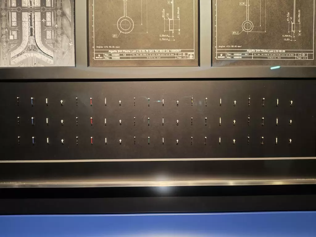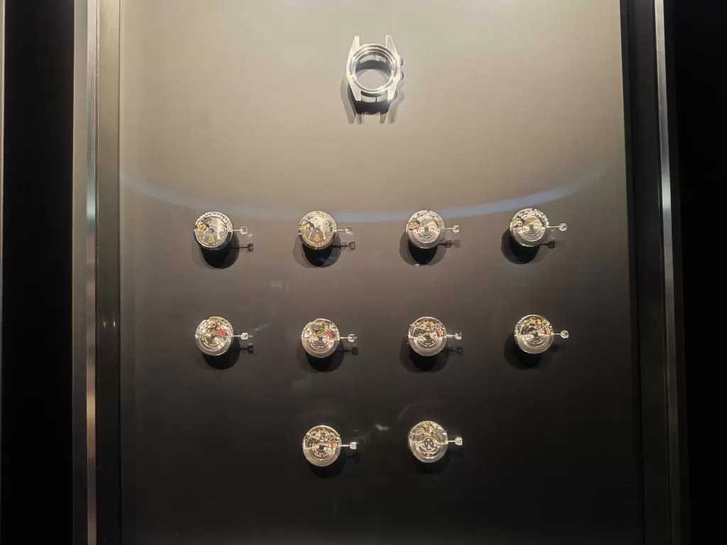 展場動線以旅行為概念,入口就像機場的前台一樣,工作人員也穿著地勤人員的服裝,最吸引是在牆上設有GMT-Master在1955年誕生年代的航班告示板。進去後就會被一台模仿1950年代的3D飛機吸引,不要錯過上方還有GMT-Master著名的雙色外圈佈置,絕對是最好的打卡景點。同場還有最新款的灰黑圈GMT-Master II型號126710GRNR,將所有零件拆解出來,先讓你知道現代ROLEX的複雜構造。