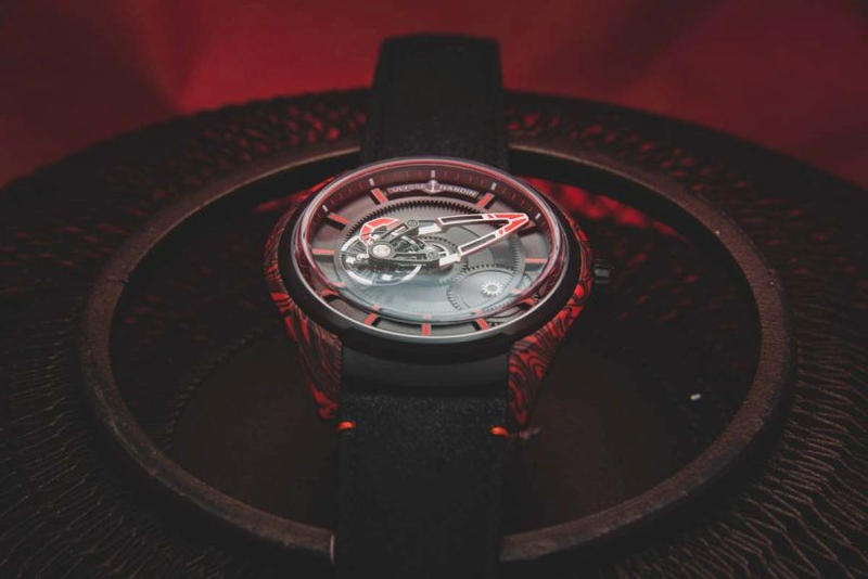 最後,壓軸登場的是全球限量50枚的FREAK S奇想S琺瑯腕錶。小時盤上的濃絳紅半透明琺瑯,由DONZÉ CADRANS工坊在800度高溫下反覆燒製而成,搭配雙傾斜式矽質擺輪與微型差速器,展現雅典錶在高複雜製錶與藝術工藝上的頂級水準。這款紅色腕錶不僅象徵新年吉祥,更是收藏級的時計代表,售價NTD 5,350,000。