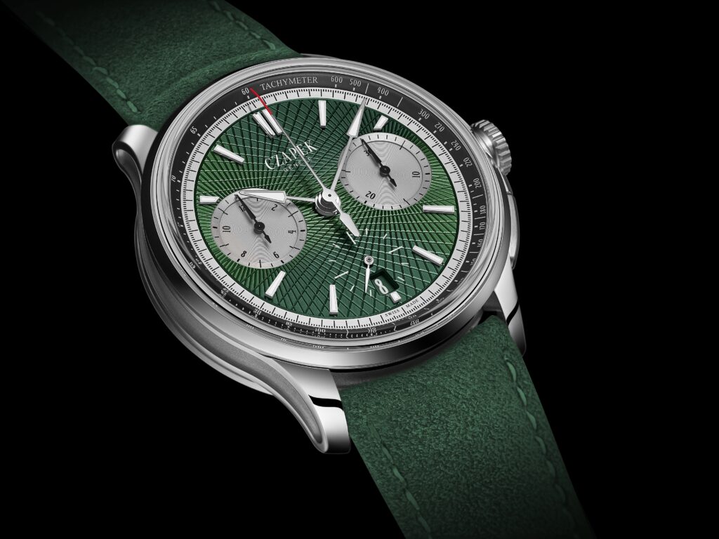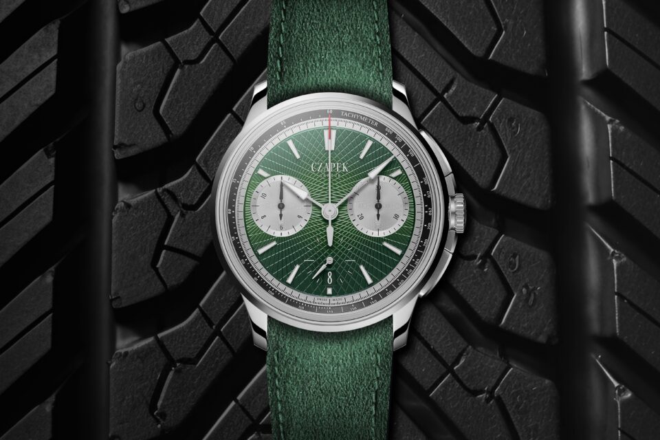 綠色的腕錶近年大受歡迎,令不少品牌都相繼推出,但是比較有古典美的英國綠卻比較罕見,而無獨有偶會用上這種綠色的腕錶,大多是特別版和限量版,證明身份同樣是尊貴一點。好像Czapek & Cie最近新作Faubourg de Cracovie “Crossroads” Victory Green計時碼表,同樣擁有那抹深沉卻極具張力的綠色,最特別是用上一般綠色腕錶也沒有的璣鏤錶盤,完美展露這枚僅限量18枚的精鋼計時腕錶更獨特的地位。