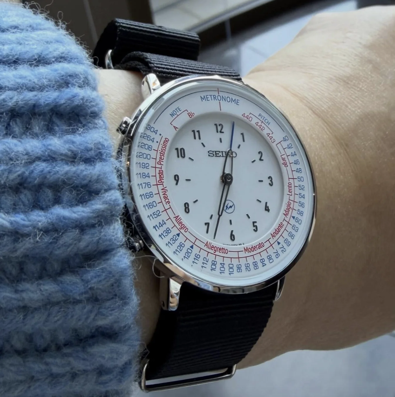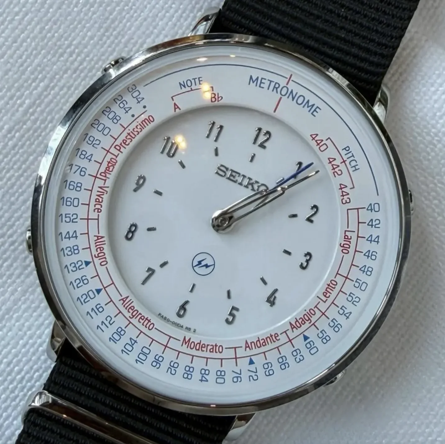 日本潮流教父藤原浩再次與鐘錶品牌合作,不過今次不是TAG Heuer,而是Seiko,推出Seiko Metronome Watch fragment Edition PA50-00B0。是次聯乘以Metronome Watch PA50系列為藍本,結合時、分顯示、拍子機與基準音產生器三種功能,能輸出A4、Bb4參考音,並覆蓋40 至300 BPM的節奏區間,功能相當過癮,可說是一枚戴在手腕上的拍子機。