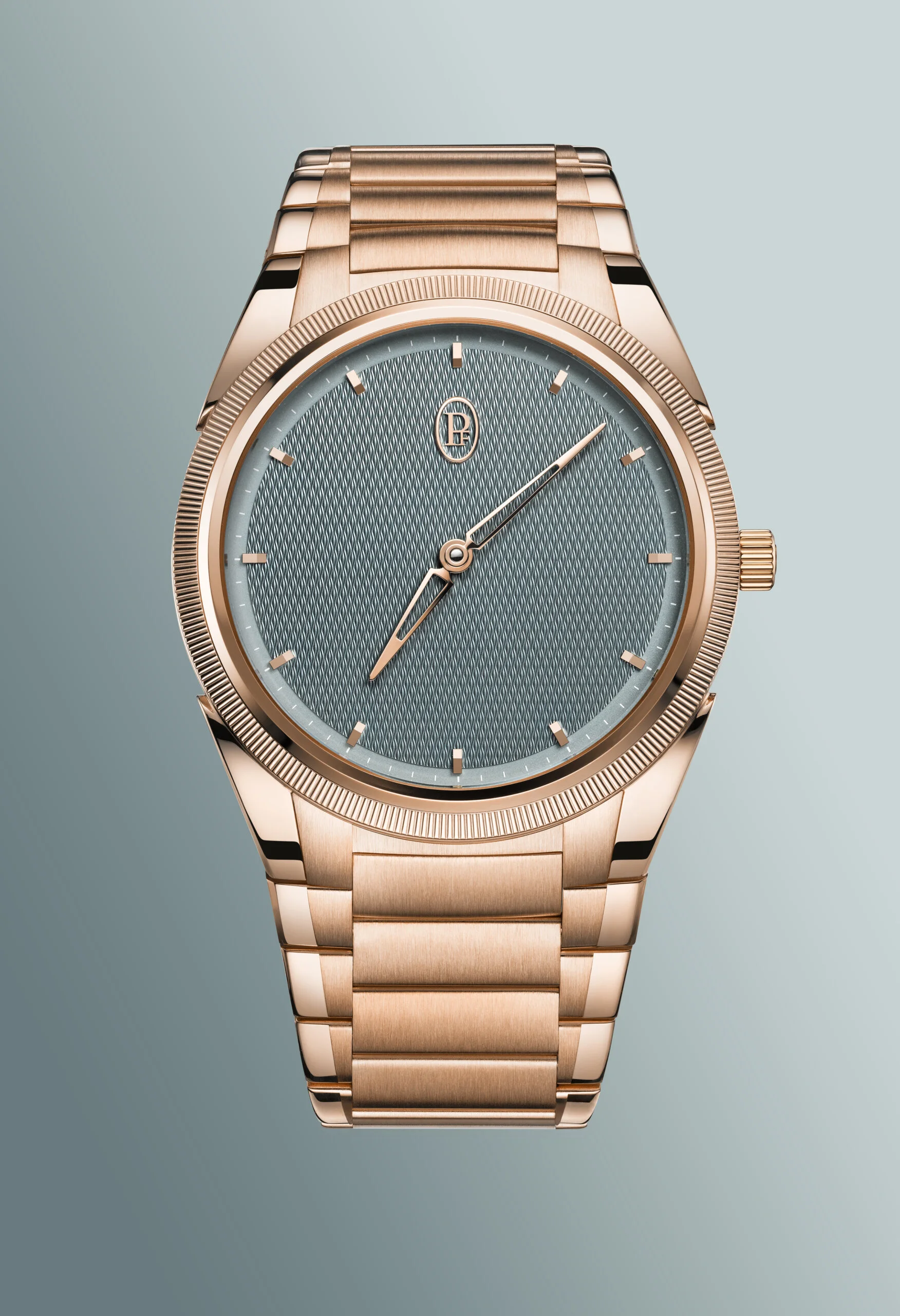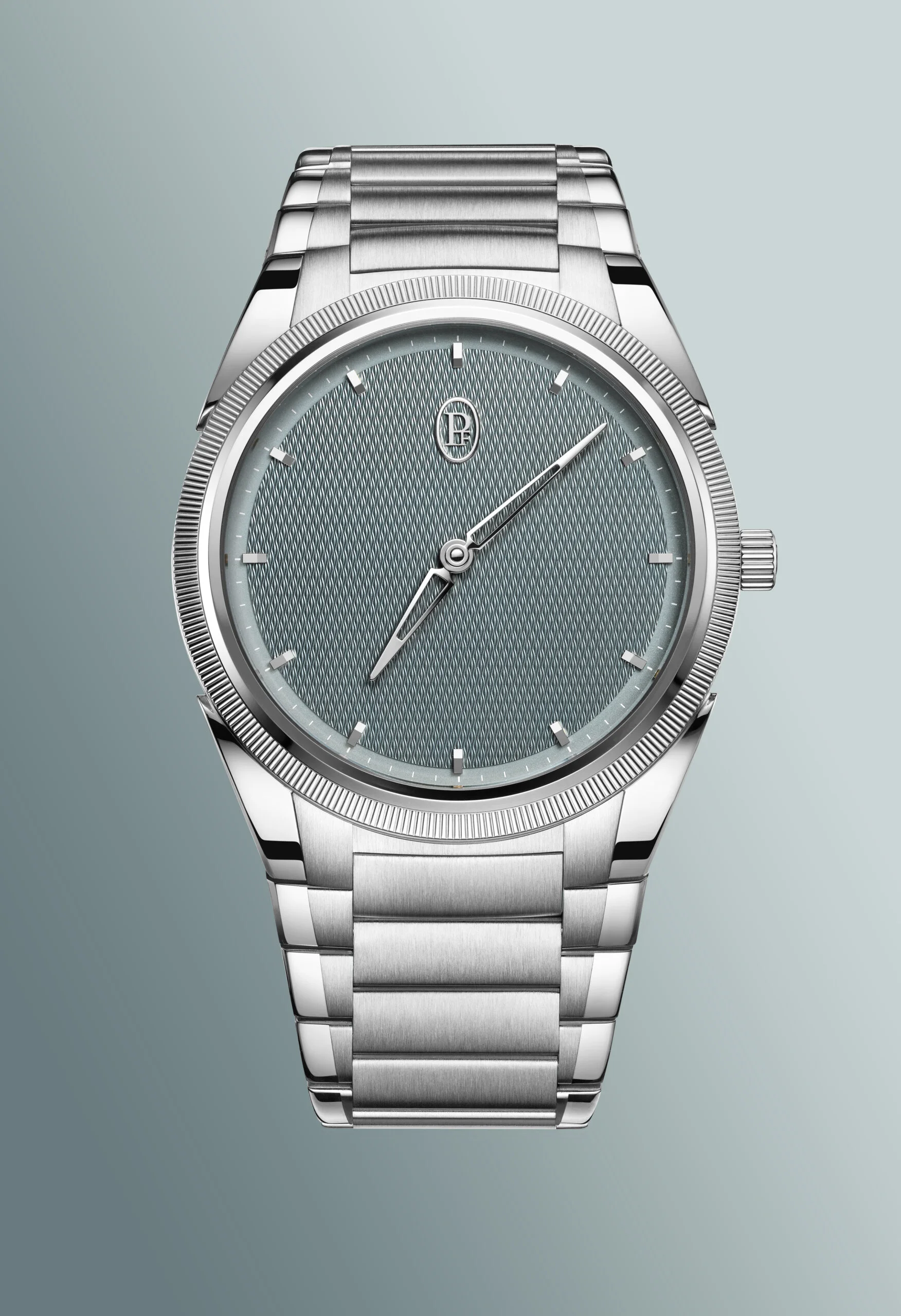 Parmigiani Fleurier再為 Tonda PF Micro-Rotor 添上全新個性,以Agave Blue龍舌蘭藍色錶盤演繹當代優雅氣質。這種Agave Blue 色調介乎礦石藍、植物綠與柔和灰之間,簡單來說就是藍中帶綠,配上格狀大麥粒手工機刻錶盤,隨光線游移呈現微妙變化,展現低調而耐看的氣質。