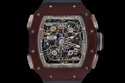 新款腕錶延續Richard Mille標誌性的酒桶形錶殼設計,並提供兩種版本:酒紅色Basalt TPT®玄武岩纖維材質,具備優異的耐化學腐蝕與抗紫外線性能,並呈現如木紋般的深邃質感;以及深藍色Quartz TPT®石英纖維材質。RM 41-01 Tourbillon Soccer限量30枚,售價約194萬美元。