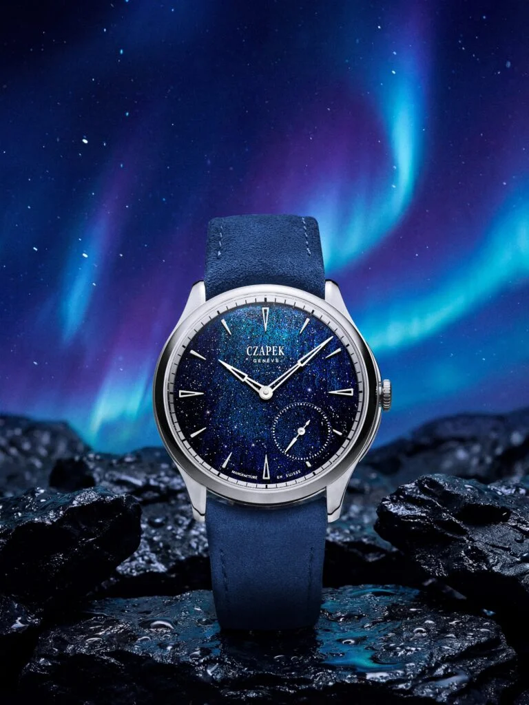 腕錶界自從流行簡約設計,錶盤的美感比複雜功能,更容易令錶迷喜歡。因而讓各大品牌,也努力地運用不同材質、圖案和工藝在錶盤之上。而說到獨一無二,珍珠母貝和寶石也是最受歡迎的材質之一。如果可以跟大熱的冰藍色結合,更絕對是美得讓人一見傾心。Czapek最新推出的兩款限量作Antarctique S Ice Cloud與Promenade Midnight Pearl,便在珍珠母貝上呈現冰藍,以及藍色砂金色調,讓人再次體會到錶盤配搭的無限可能。