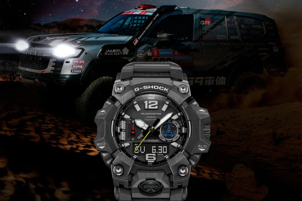 如果說腕錶跟F1世界一級方程式賽車的聯名是頂尖和優雅的代表,那麼跟達卡拉力賽的聯名,就一定是耐用和粗獷的意思。就好像CASIO的G-SHOCK與汽車品牌合作,都特別強調機械結構、耐用度,以及在極端環境下的可靠表現。最近卡西歐與豐田旗下的Team Land Cruiser Toyota Auto Body(TLC)合作,推出MUDMASTER聯名腕錶GWG-B1000TLC-1A,第一眼看見就讓我想到夜間拉力賽的緊張氣氛。