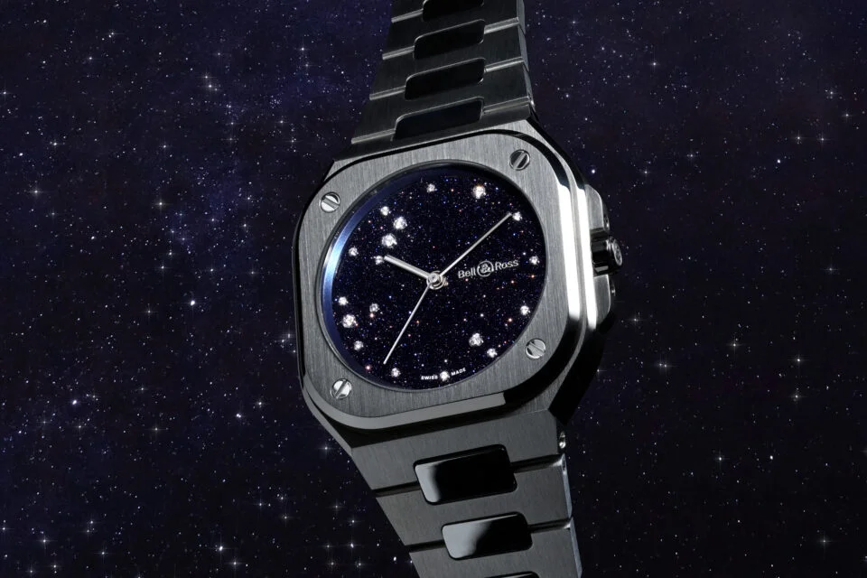 這枚錶最吸引我的,一定是那片深邃的砂金石錶盤。它不像傳統藍面那樣單純,而是帶有閃爍的質感,就像夜空中流動的星河。砂金石錶盤的製作非常講究溫度控制,比一般特別錶盤難度更高。讓人在不同角度觀察時,都呈現細微的光點變化,沉浸在其魅力之中。另一方面,星座主題的鑽石配置,以天鷹座為靈感,把7顆主鑽排列在對應星位之上,除最醒目的牛郎星的那一顆之外,其餘鑽石則勾勒出雄鷹展翅的輪廓,配合12顆鑽石時標,從視覺上建立出層次與節奏。