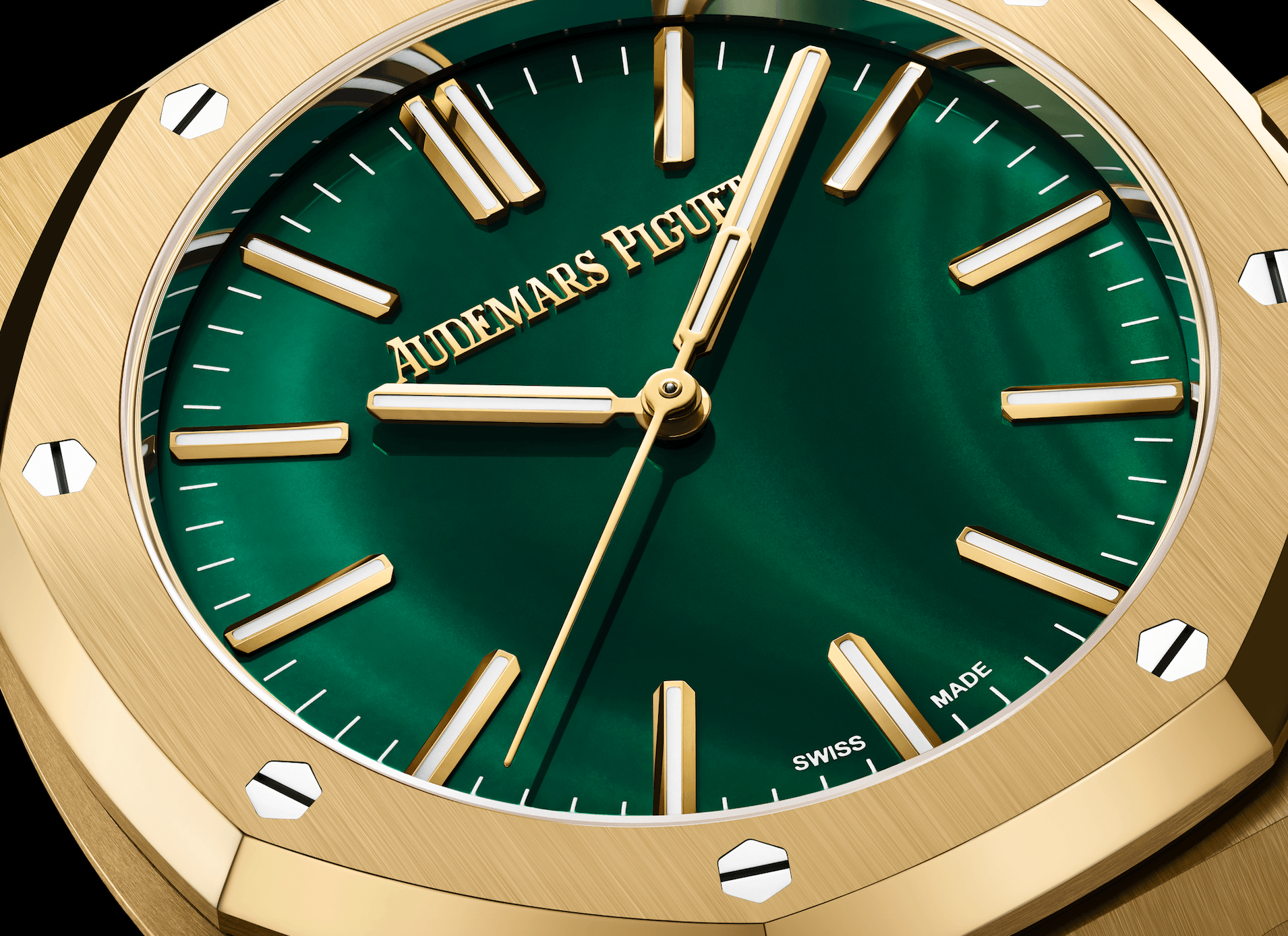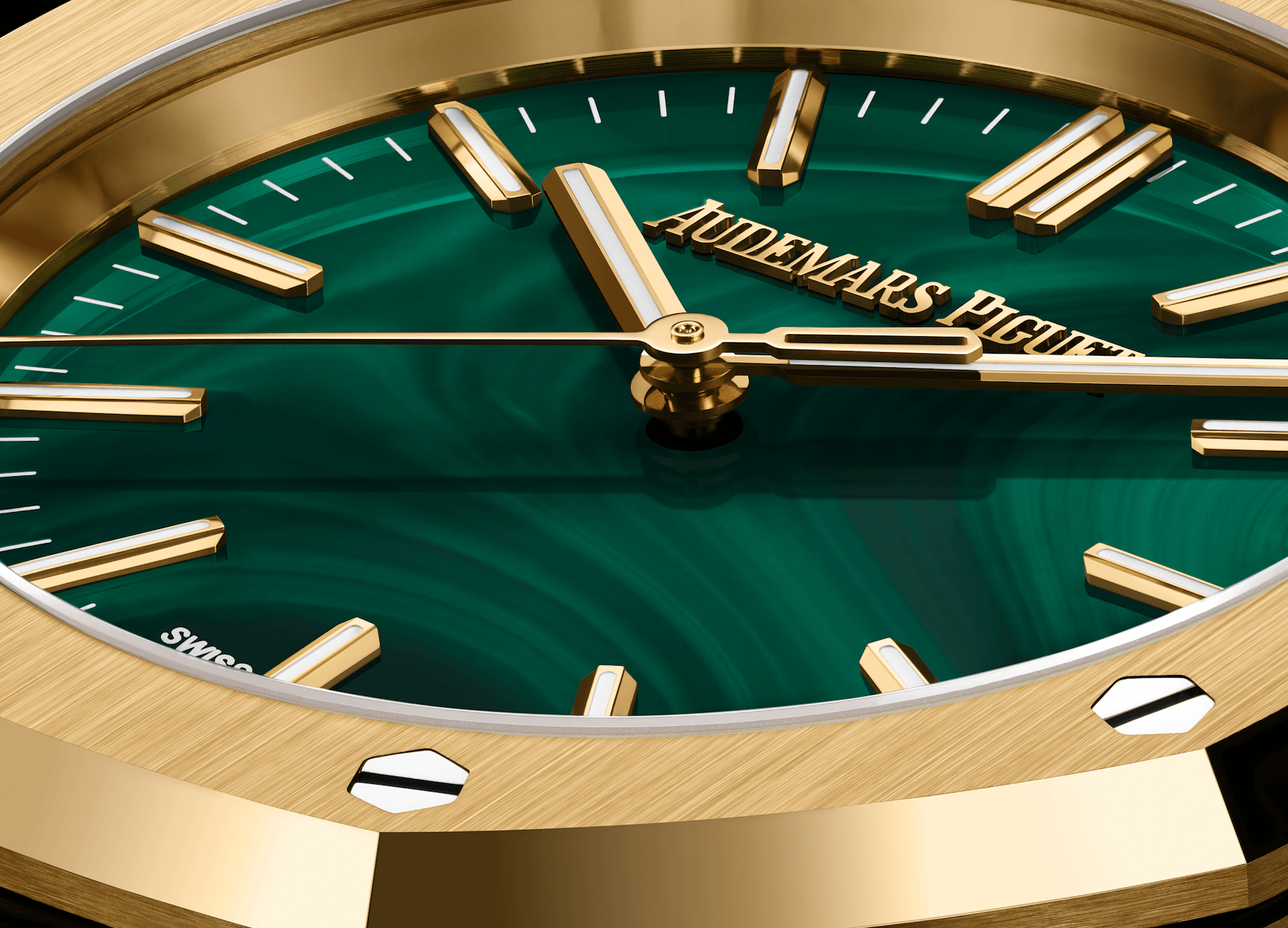 如果說鏤空萬年曆代表Audemars Piguet的技術層面,那麼孔雀石面Royal Oak Selfwinding就代表品牌的另一重材質美學。孔雀石本身已有極高的辨識度,配合Royal Oak線條硬朗、輪廓鮮明的設計,產生非常強烈的視覺對比,令整枚錶既有力量感,又帶出天然材質的細膩紋理。孔雀石的魅力在於它不是被「設計」出來,而是天然形成。每枚錶盤的紋理、色階與銅綠感都不會完全相同,因此即使是同一型號,也會因石材本身的礦銅成分而產生獨一無二效果,令每枚錶多了一點「專屬感」。新作亦符合當代的審美:一方面保留品牌運動豪華錶的經典結構,另一方面帶來珠寶與天然材質的稀缺感,讓作品既能日常佩戴,也有更高的收藏價值。
