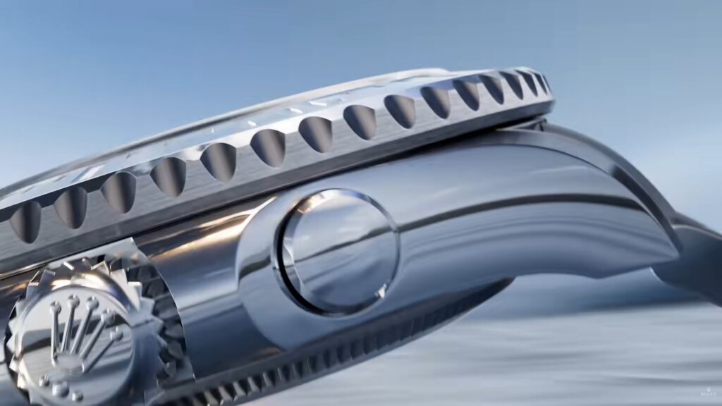 由於這一次的影片,現身的腕錶比較多,當中最意想不到的,可說是Yacht-Master II好像是重新歸來?因為在其中一個鏡頭中,我們可以看到一枚擁有按鈕的腕錶側面,而按鈕卻沒有上鎖設計,所以應該不是Daytona。至於從錶冠的圓點,則顯示是一枚擁有三重防水設計的K金腕錶,還可以觀察到其外圈是設有分鐘刻度。如果以ROLEX曾經推出的腕錶來說,比較相似的就是Yacht-Master II。不然的話,就有可能是將推出全新的腕錶系列,那就更加叫人驚喜。