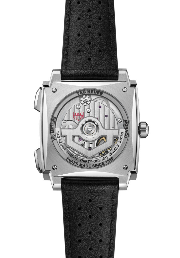 至於Monaco Evergraph計時腕錶,就是走向未來的實驗之作。最核心突破,在於Calibre TH80-00機芯所採用的柔性雙穩態計時機制。再加上TH-Carbonspring碳游絲、5Hz高振頻、70小時動力儲存以及COSC認證,讓這枚機芯的規格幾乎是一次到位。操作上改以鎳合金製成的彈性元件來完成啟動、停止與歸零,令按下計時按鈕的回饋變得更加乾脆、精準。透明錶盤則是另一個亮點。指針彷彿懸浮在空中,底下的機芯結構若隱若現,既有科技感,也保留機械錶該有的深度。這種看得見但不完全看透的處理,也許比全鏤空更耐看。