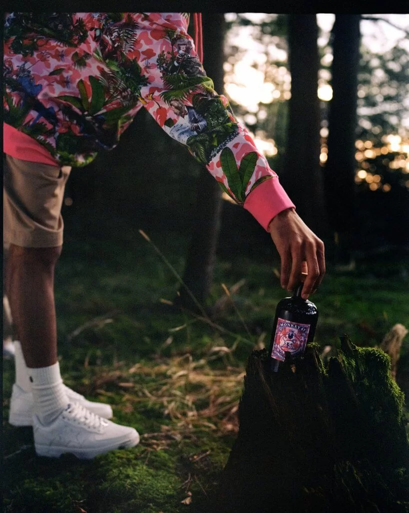 BAPE帶著Monkey 47氈酒的同一理念──對創新的熱情,並與全球來自各行各業的品牌合作,創造出眾多獨一無二的産品。 最近的合作將看到時裝巨頭與時尚的氈酒品牌融合在一起,在彩色叢林中創造一個狂野而美妙的漫步。