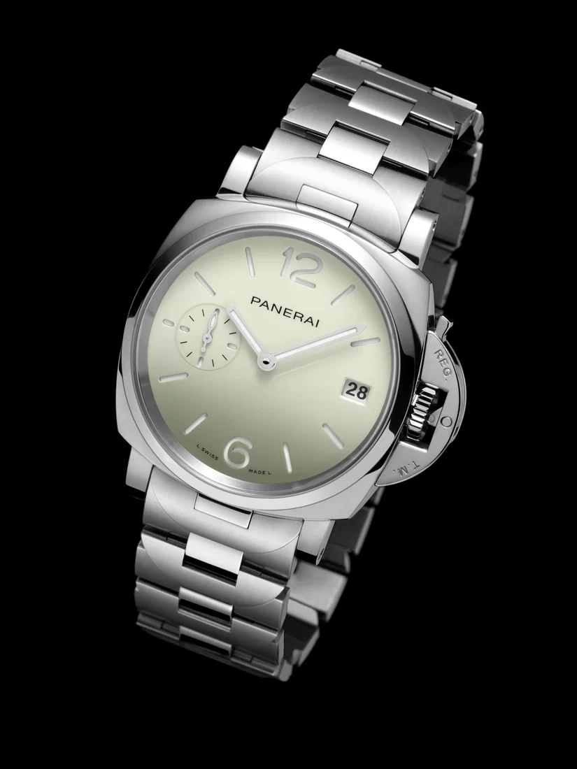 來到今次Luminor Due 38毫米錶款新作,品牌破天荒採用淡色系錶盤,為錶款換上「天藍、淡綠、嫩粉」新裝,設計時尚,同時延續咕牌一貫的設計美學及實用功能為本的理念,為時計製作傳統注入新意;38毫米拋光精鋼錶殼配金屬鏈帶,呼應Panerai製錶工藝及設計語言,讓都市人在日常襯搭上有更多選擇。